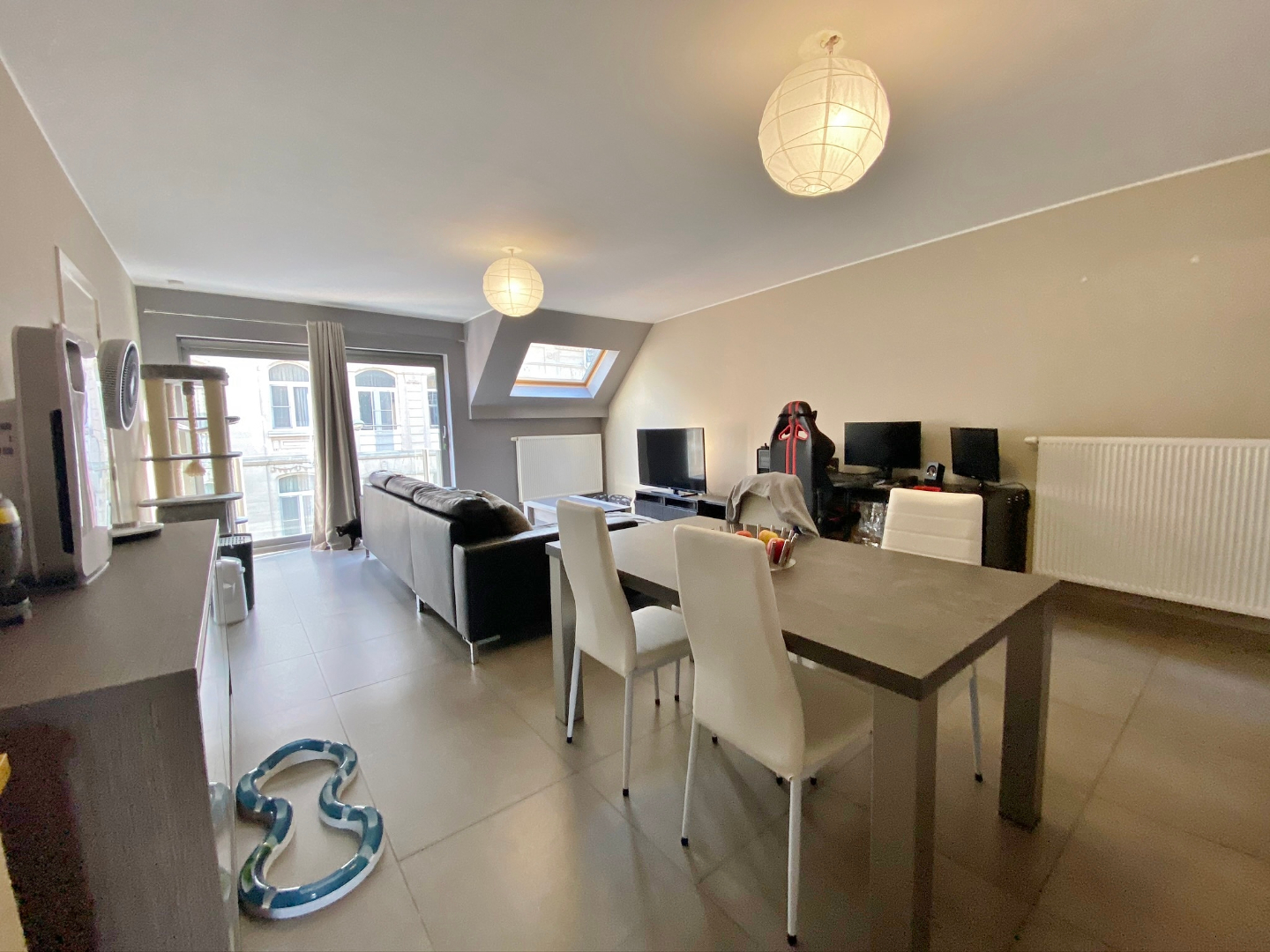 Dit appartement is gelegen in het centrum op wandelafstand van de markt en het station en omvat een inkom, apart toilet, ruime lichtrijke leefruimte, open volledig ingerichte keuken, bergruimte met wasmachine en droogkast, ruime slaapkamer en badkamer met dubbel lavabomeubel en inloopdouche.