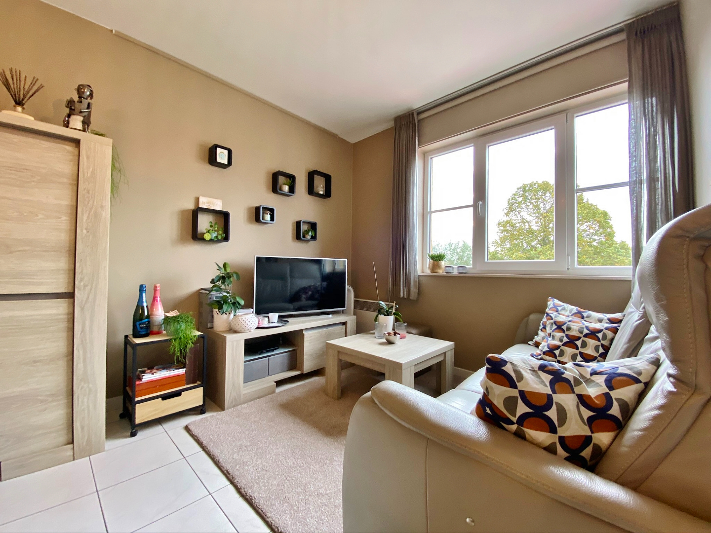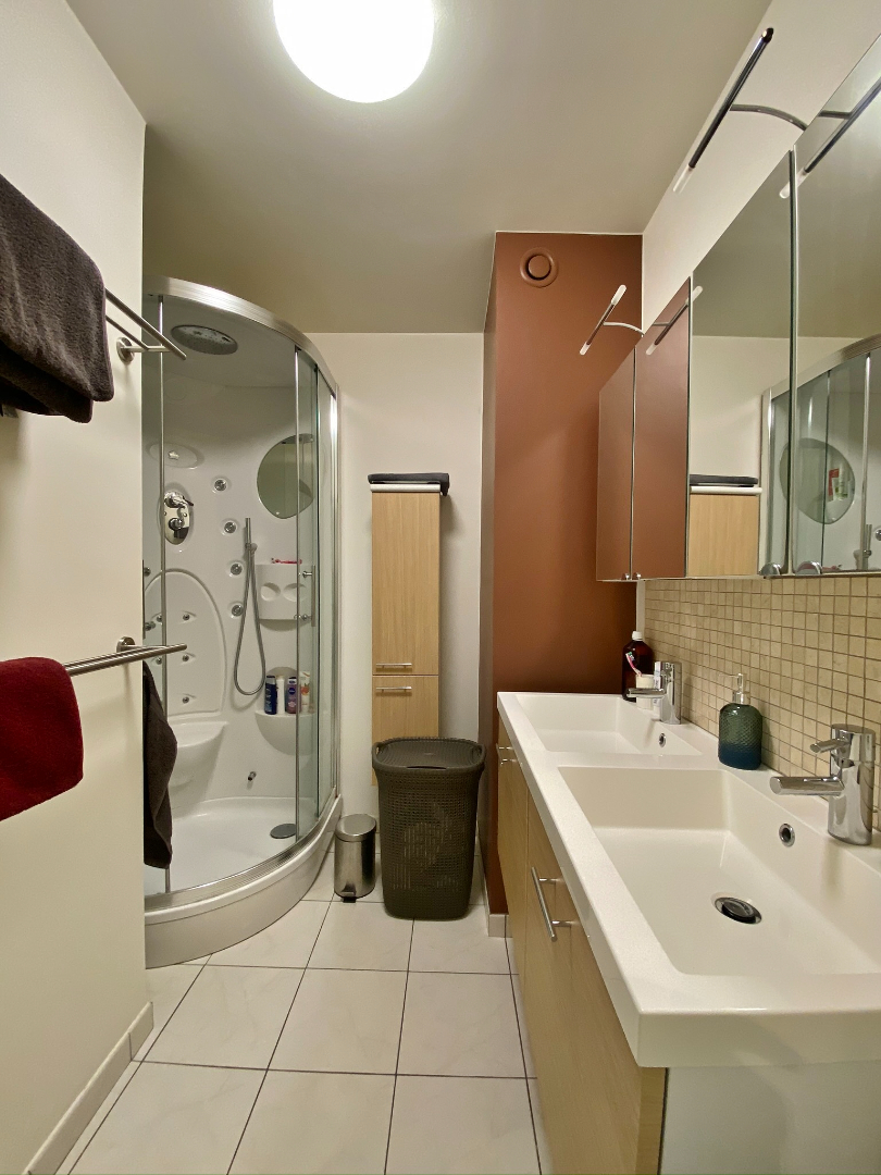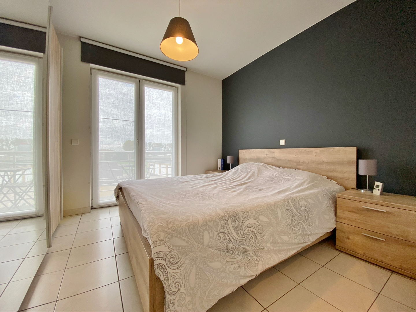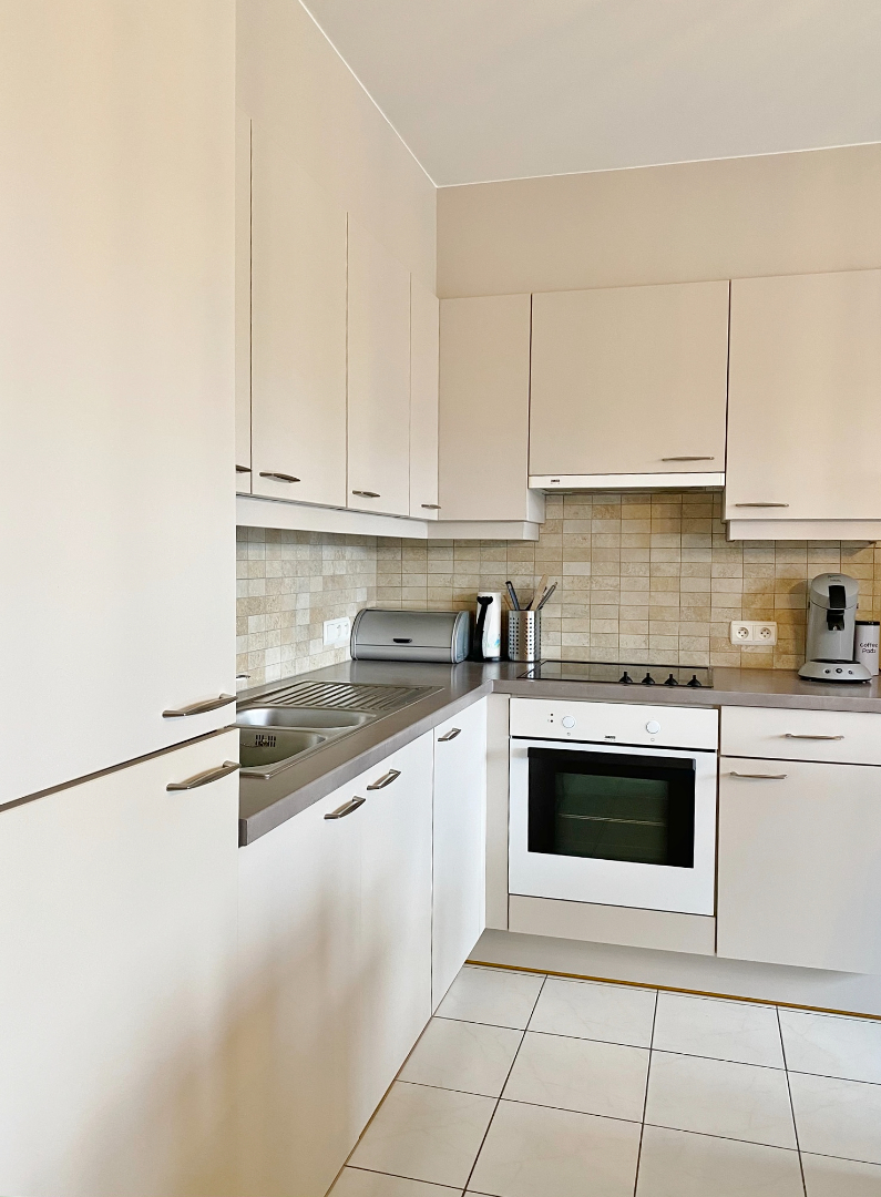 Dit appartement is centraal gelegen tussen het centrum van Ieper en de A19 en omvat een inkom, ruime lichtrijke leefruimte met volledig ingerichte open keuken en toegang tot een gezellig zuid-gericht terras, 1 zeer ruime slaapkamer met toegang tot het tweede terras, een tweede slaapkamer/bureau, apart toilet, bergplaats en een badkamer met moderne douche, dubbel lavabomeubel en aansluiting voor wasmachine en droogkast.