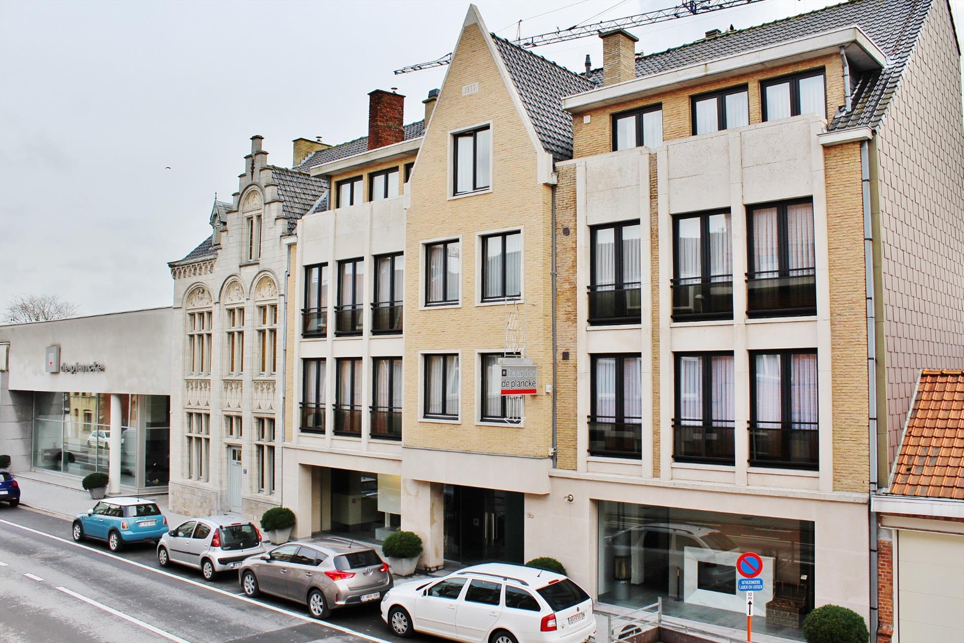 Dit volledig vernieuwd luxueus appartement is gelegen op de eerste verdieping van een stijlvolle residentie op 300 meter van de Menenpoort en omvat een ruime inkom, apart toilet, ruime lichtrijke leefruimte met open volledig nieuw ingerichte keuken, bergruimte, badkamer met inloopdouche, lavabomeubel en aansluiting voor wasmachine, 2 ruime slaapkamers en een zeer ruim zonnig terras.