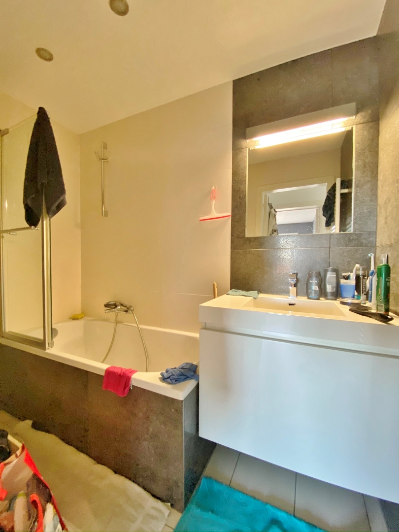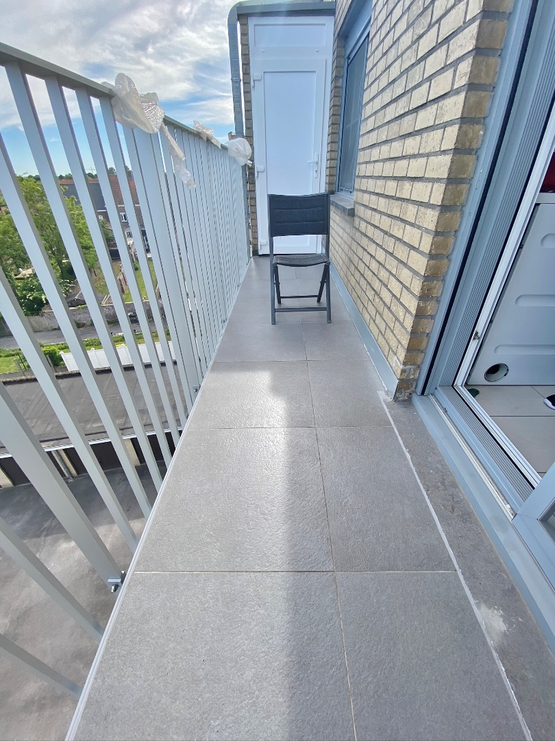 Dit appartement is gelegen op de 4de verdieping en omvat een inkom, apart toilet, ruime lichtrijke leefruimte, volledig ingerichte keuken met aansluitende berging, 2 slaapkamers, badkamer met bad en lavabomeubel en 2 terrassen.