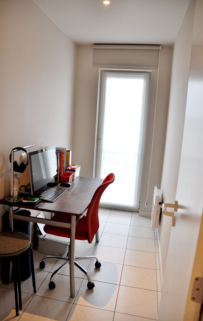 Dit appartement is centraal gelegen tussen het centrum van Ieper en de A19 en omvat een inkom, ruime lichtrijke leefruimte met volledig ingerichte open keuken en toegang tot een gezellig zuid-gericht terras, 1 zeer ruime slaapkamer met toegang tot het tweede terras, een tweede slaapkamer/bureau, apart toilet, bergplaats en een badkamer met moderne douche, dubbel lavabomeubel en aansluiting voor wasmachine en droogkast.