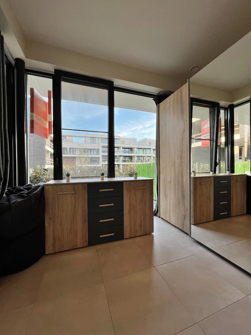 Dit nieuw appartement is gelegen op de gelijkvloerse verdieping in de stijlvolle residentie Infinity en omvat een inkom, gastentoilet, lichtrijke leefruimte met aansluitend ruim zuid gericht terras, volledig ingerichte keuken, bergplaats met aansluiting voor wasmachine, badkamer met douche en lavabo meubel, slaapkamer, een autostandplaats en een kelderberging.