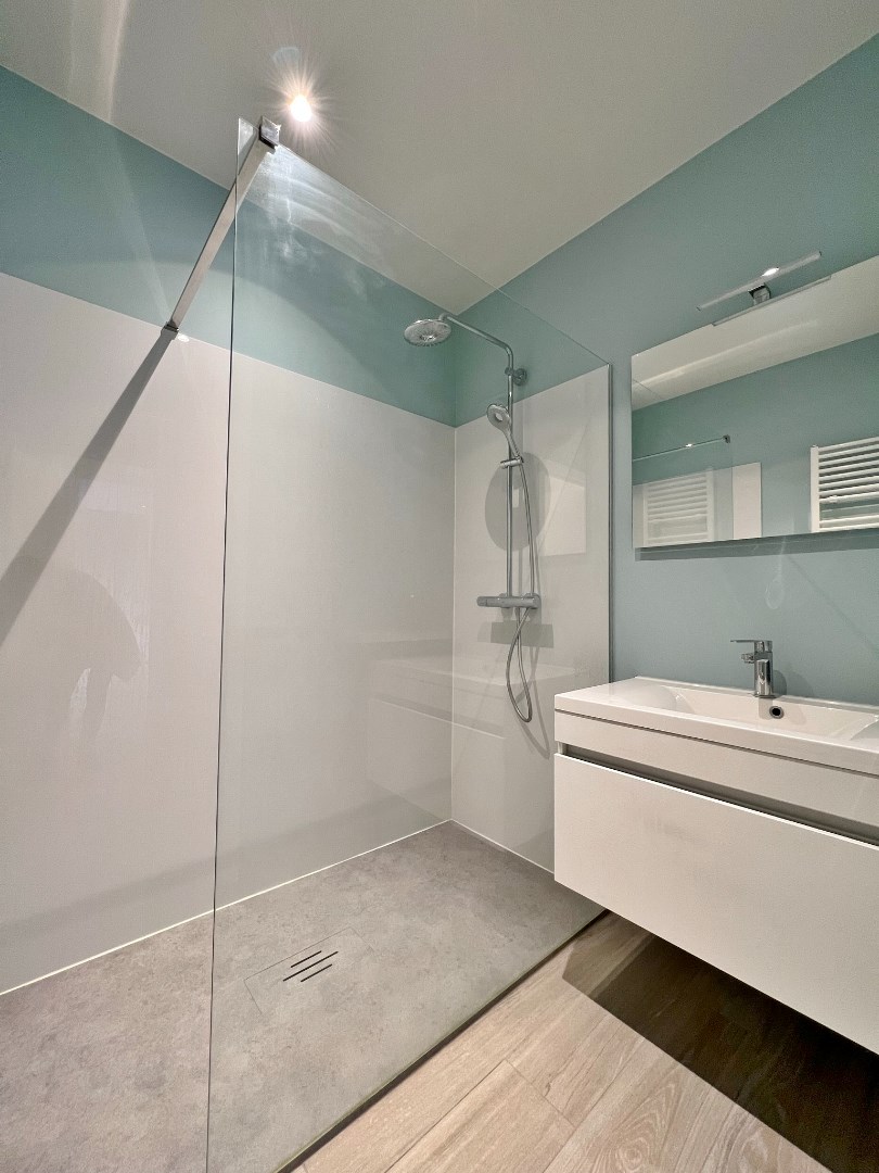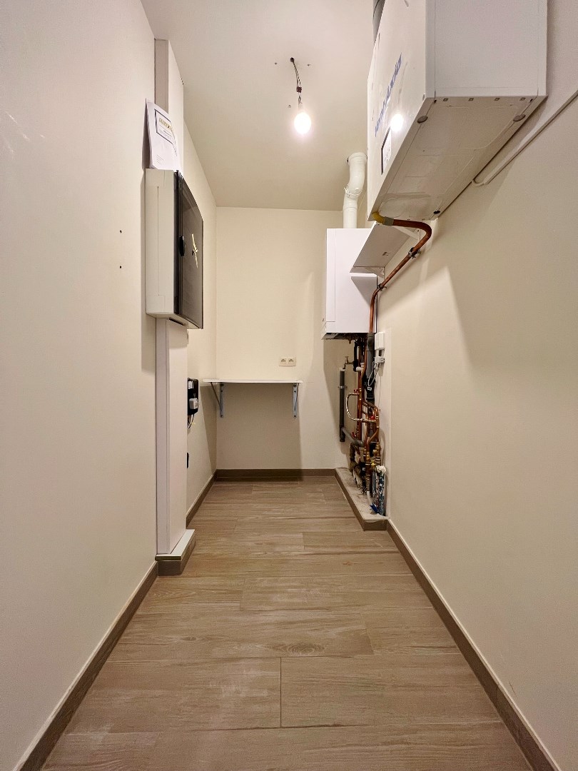 Indeling: inkomhal (3,5m²) - was-technische berging (3m²) - gastentoilet (2m²) - open leefruimte met gezellige sfeerhaard + open ingerichte keuken uitgerust met vaatwas, inductie-kookplaat, werkblad in natuursteen, combi-oven en inox spoelbak (33,5m²) - badkamer met inloopdouche en lavabomeubel (4m²) - 2 slaapkamers met inbouwkasten (18m² - 12m²) - terras (8m²) - kelderberging (4m²)