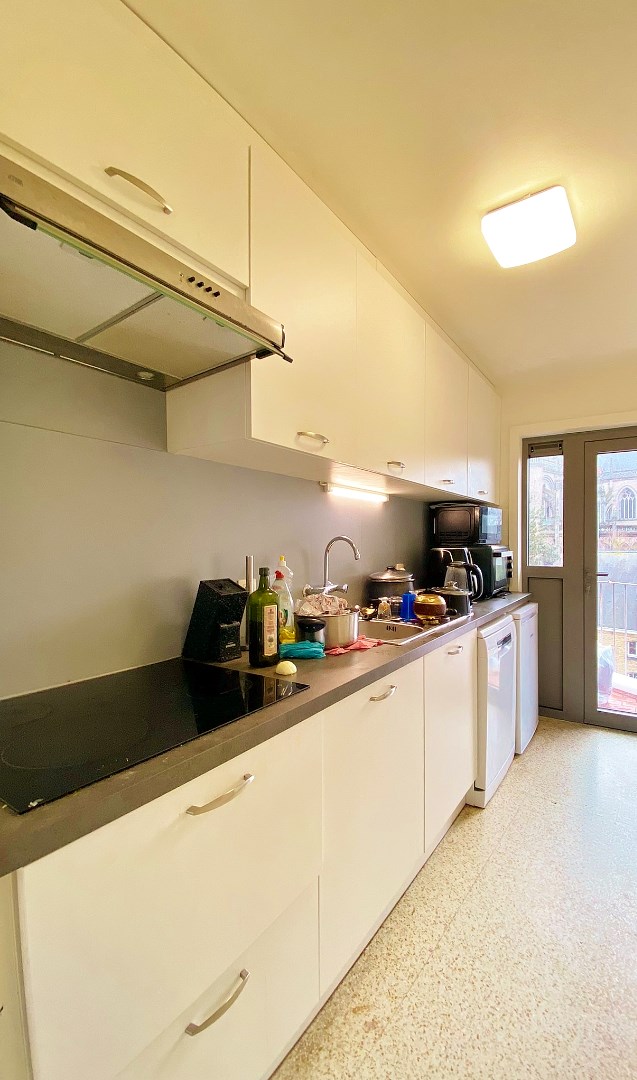 Dit vernieuwde appartement ligt op enkele meters van de Grote Markt te Ieper en beschikt over een inkomhal, lichtrijke woonkamer, volledig ingerichte keuken, twee slaapkamers, badkamer met bad, lavabo en toilet en een koertje.