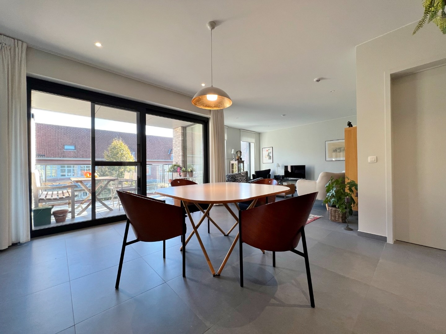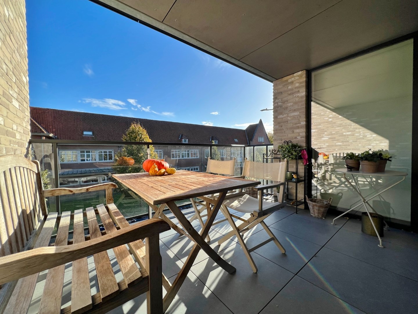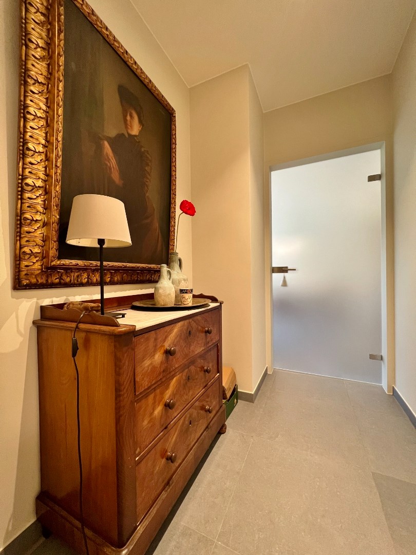 Dit lichtrijk appartement is centraal gelegen en omvat een inkom, ruime lichtrijke leefruimte met eet- en zitplaats, volledig ingerichte keuken, grote bergruimte, apart toilet, badkamer met ligbad, douche en dubbel lavabomeubel en twee ruime slaapkamers waarvan 1 met ingemaakte kasten. Er is tevens een zonnig terras met open zicht.