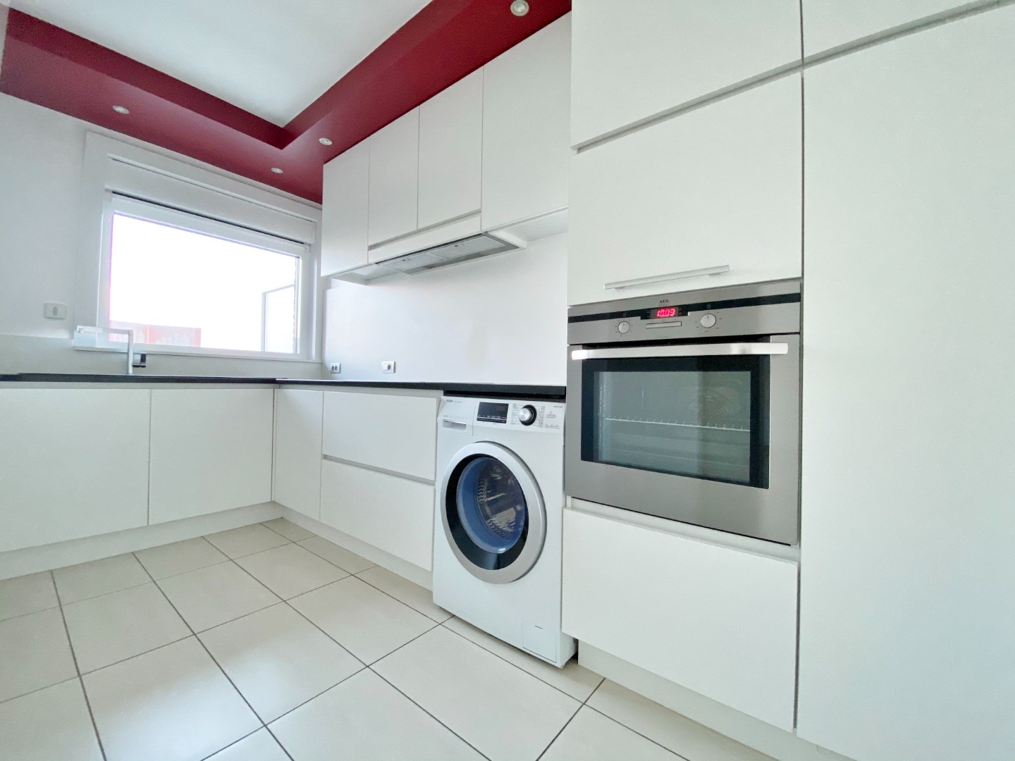 Dit appartement is gelegen op de 4de verdieping en omvat een inkom, apart toilet, ruime lichtrijke leefruimte, volledig ingerichte keuken met aansluitende berging, 2 slaapkamers, badkamer met bad en lavabomeubel en 2 terrassen.