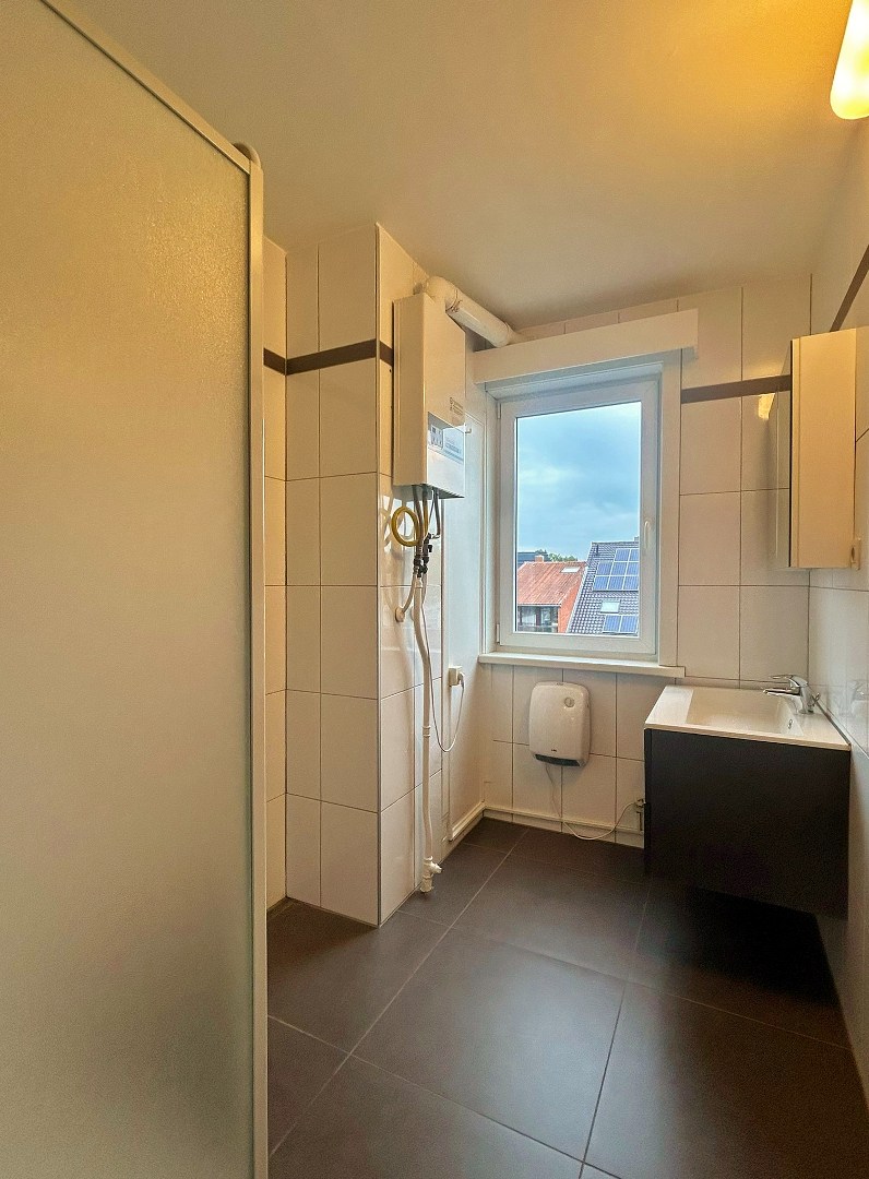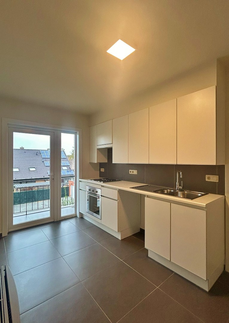 Dit ruime appartement bevindt zich op het tweede verdiep en omvat een inkomhal, lichtrijke leefruimte, ingerichte keuken (incl. aansluiting en afvoer wasmachine) met aansluitend een gezellig terras, twee ruime slaapkamers, badkamer met lavabomeubel en douche en een apart toilet.