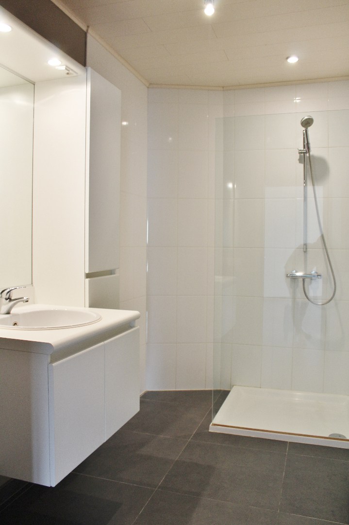 Indeling : Leefruimte met veel lichtinval, volledig ingerichte keuken met kookplaat, dampkap, warmeluchtoven, microgolfoven, koelkast, badkamer met inloopdouche, lavabo in kastmeubel, 1 slaapkamer, berging met aansluiting voor wasmachine, apart toilet, terras in bankirai.