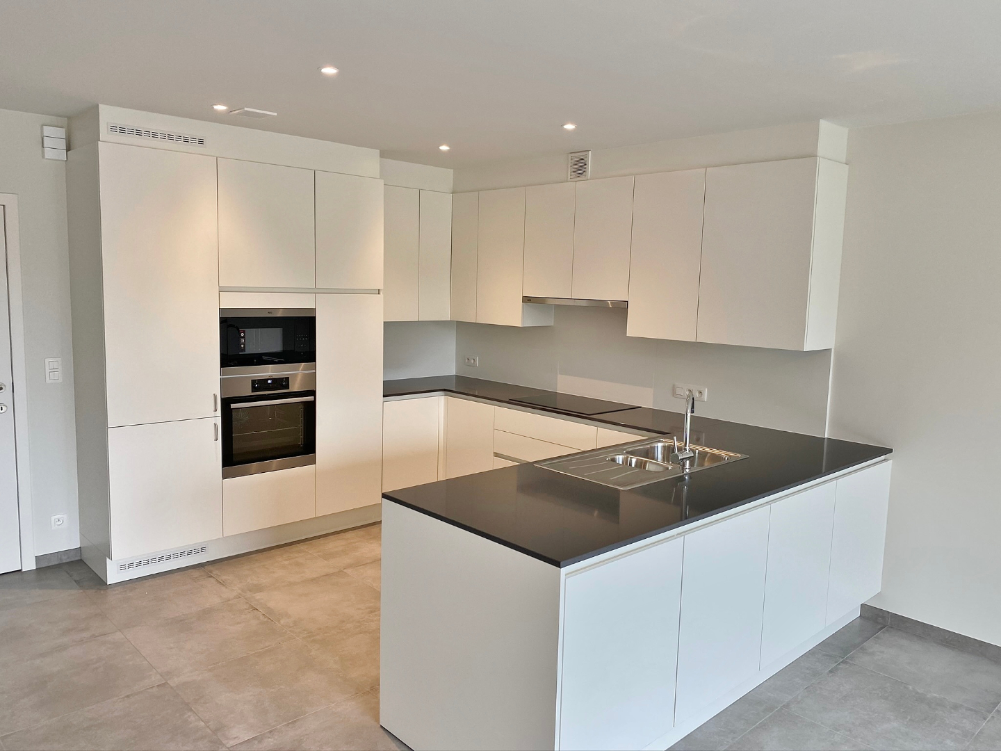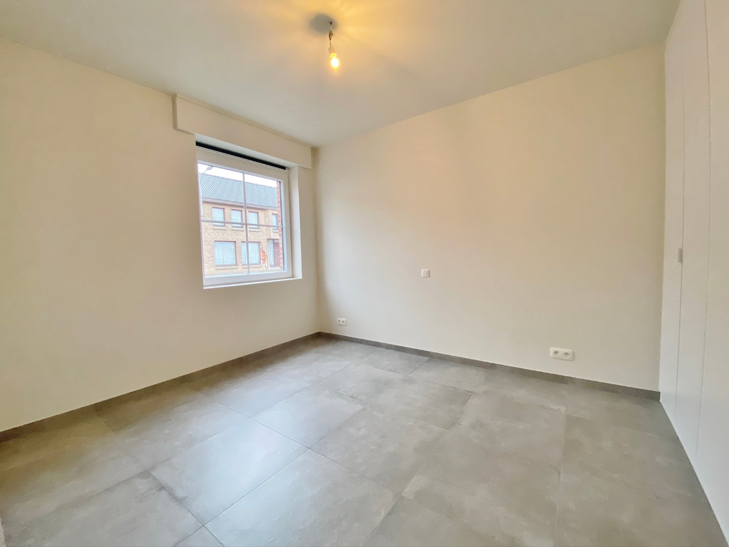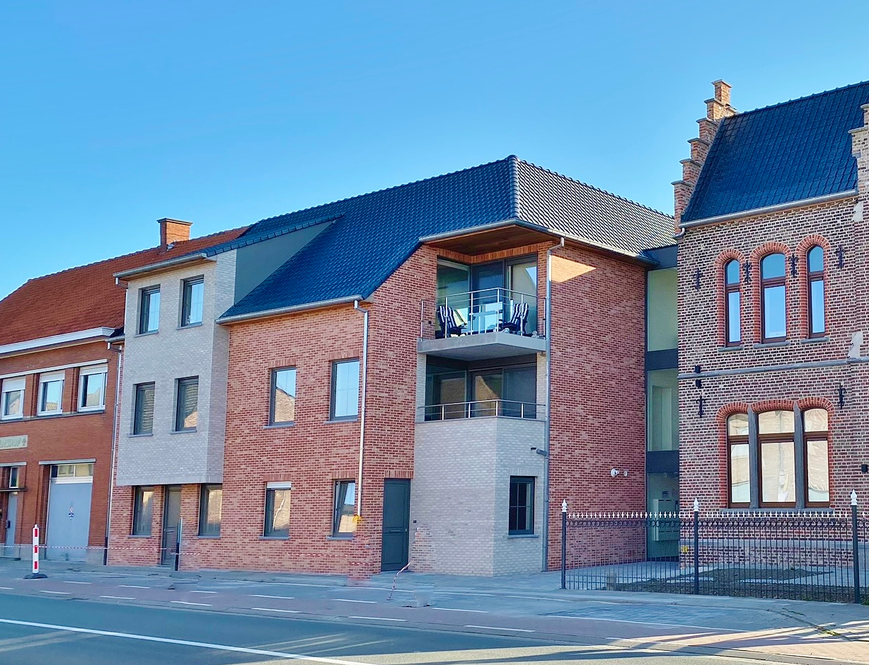 Het appartement is gelegen op de hoek van het marktplein en omvat een inkom, gastentoilet, ruime lichtrijke leefruimte met open volledig ingerichte keuken en aansluitend volledig afgesloten tuin met terras, bergplaats, 2 slaapkamers, badkamer met inloopdouche, bad en lavabomeubel.