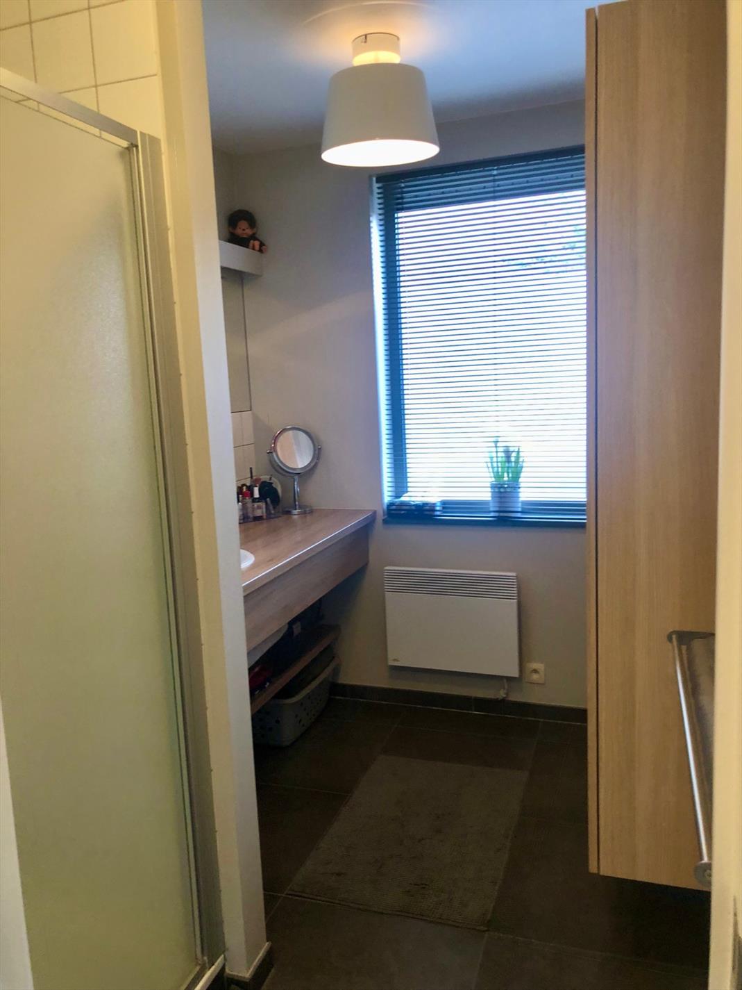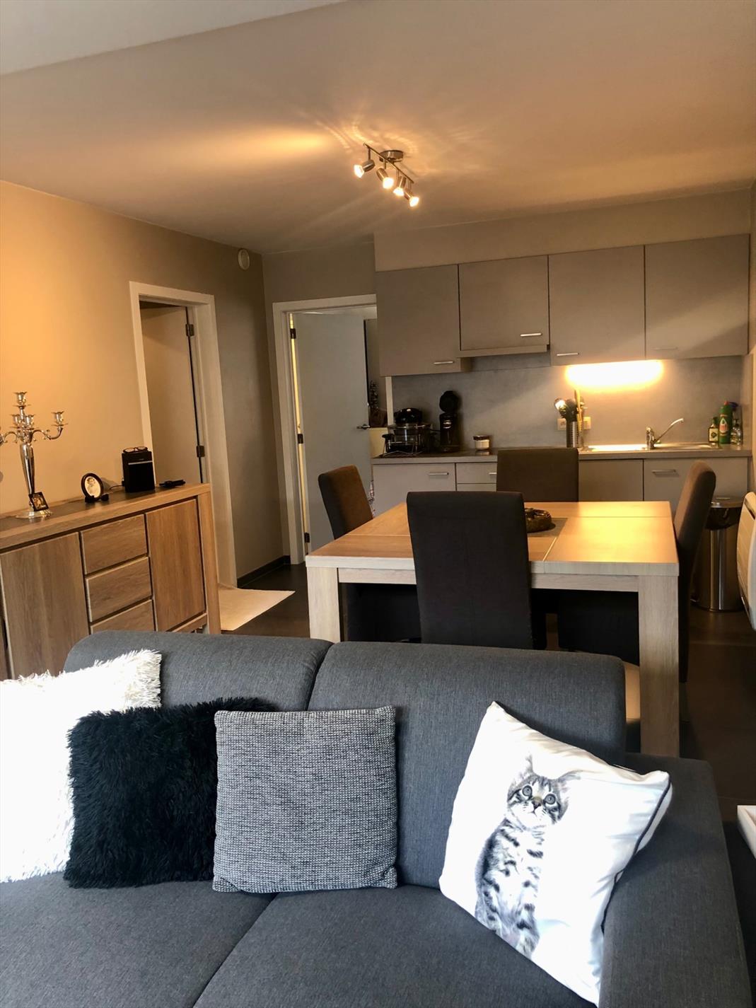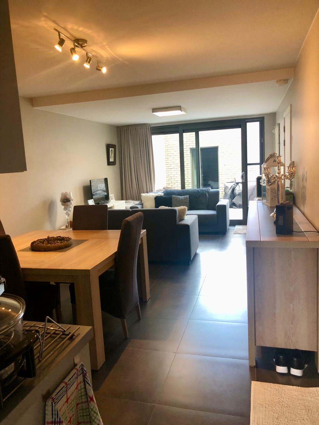 Het appartement bestaat uit een gezellige leefruimte met volledig ingerichte open keuken, groot schuifvenster uitgevend op aansluitend terras, apart toilet, ruime slaapkamer, berging, badkamer met douche, lavabo en extra legplanken. Gemeenschappelijke ruimte voor berging van fietsen, vuilnisberging (afhaling vuilnis inbegrepen in de huurprijs)