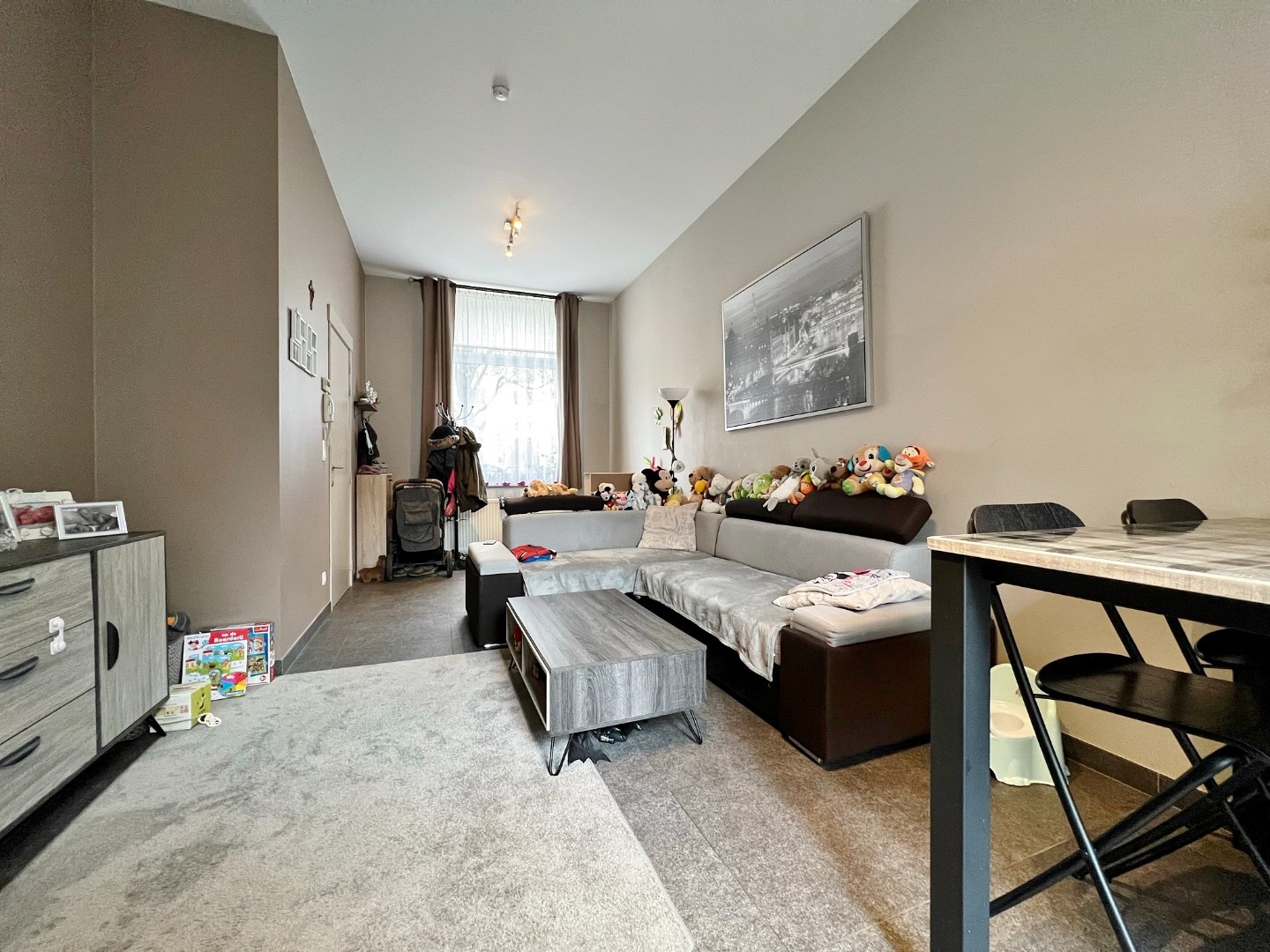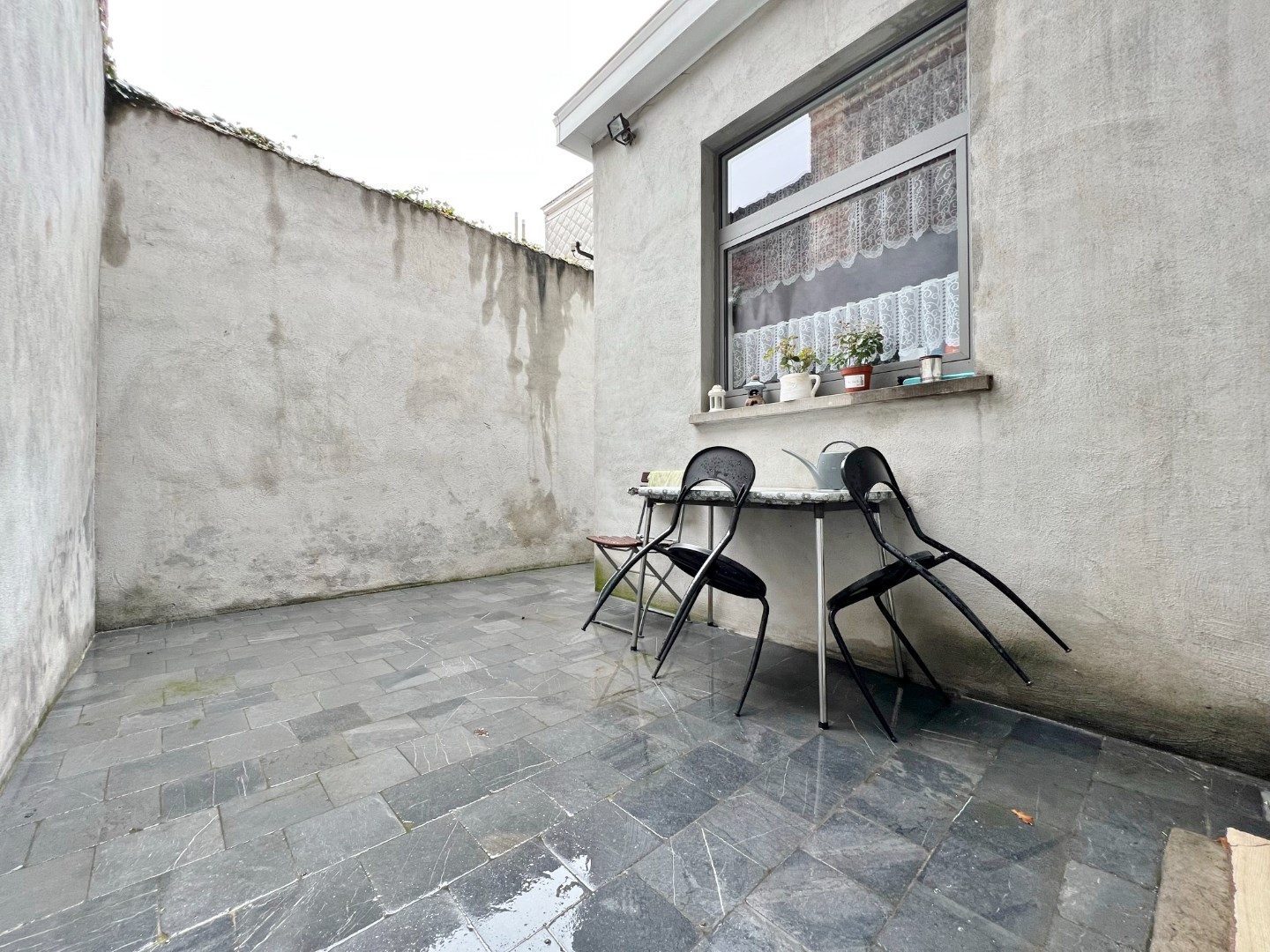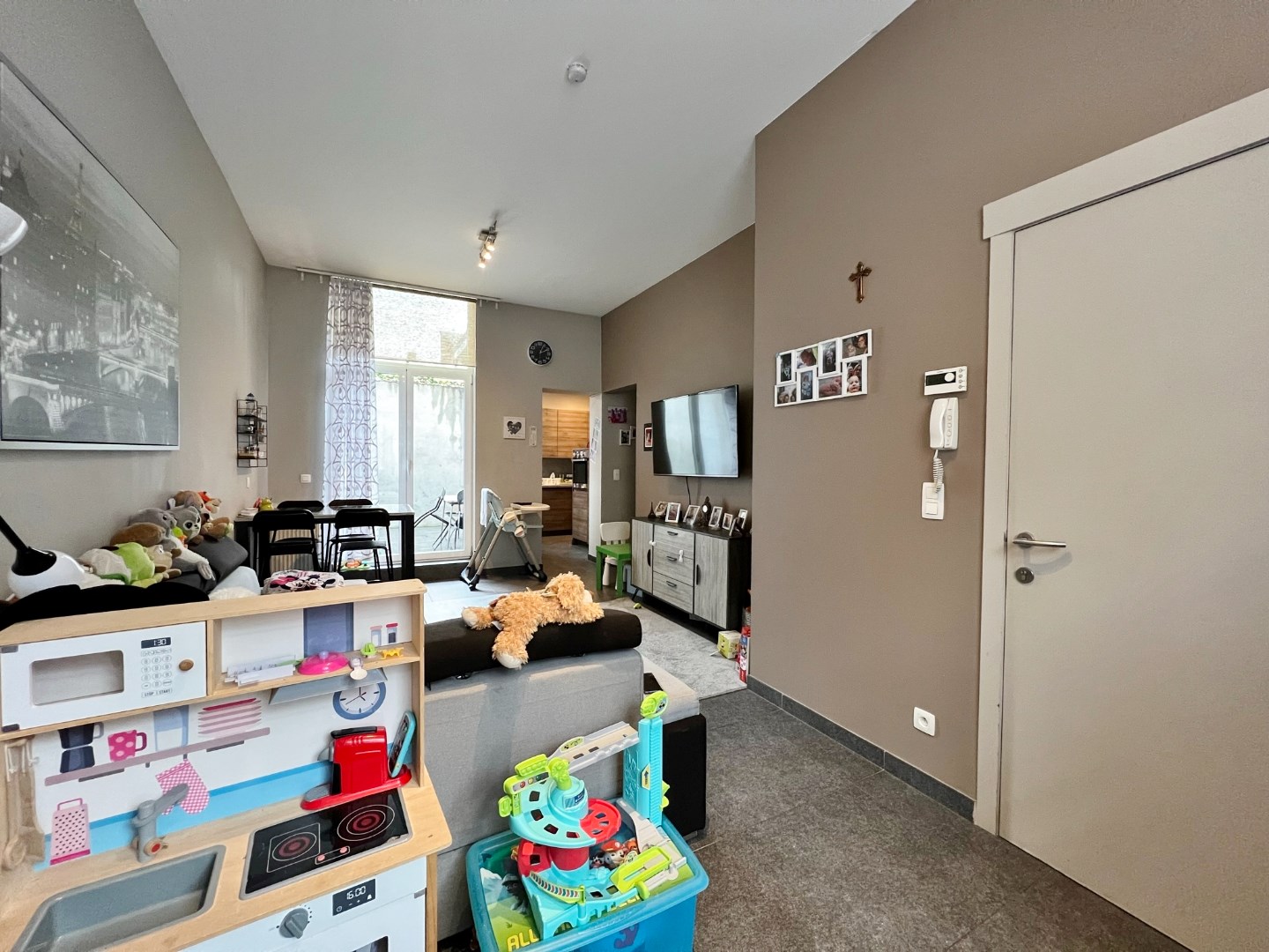 Via de leefruimte kan je de gezellige koer betreden.