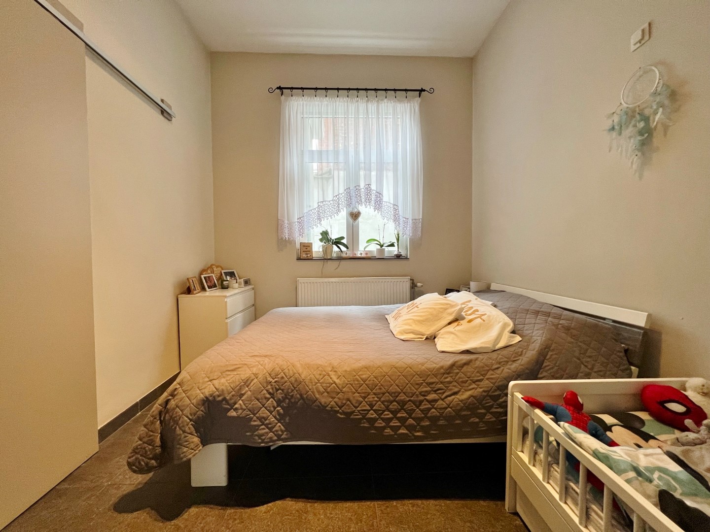Dit vernieuwd gelijkvloers appartement omvat een lichtrijke leefruimte, volledig geïnstalleerde keuken, 2 ruime slaapkamers en een badkamer met lavabomeubel, douche, toilet en aansluiting voor de wasmachine.