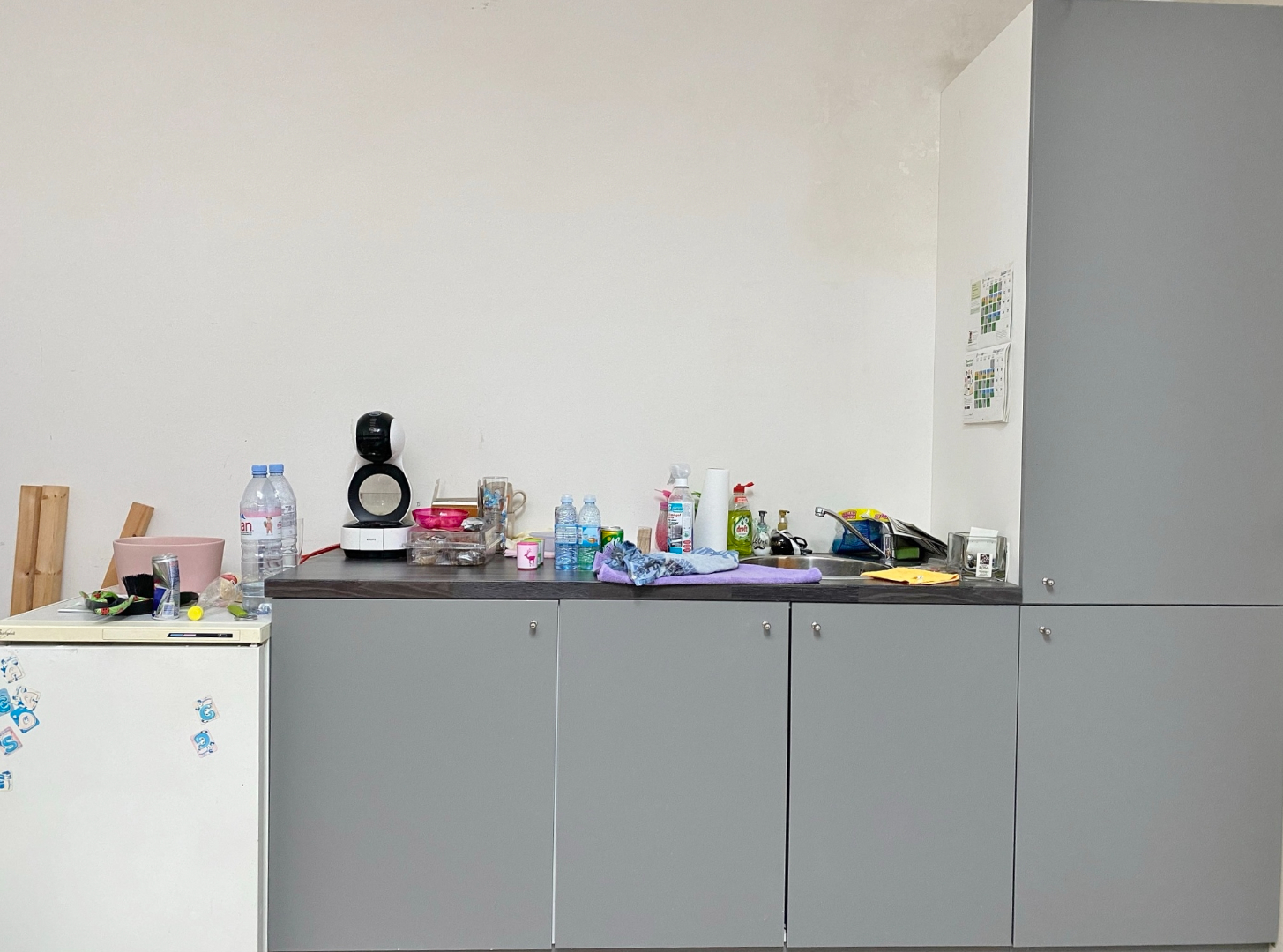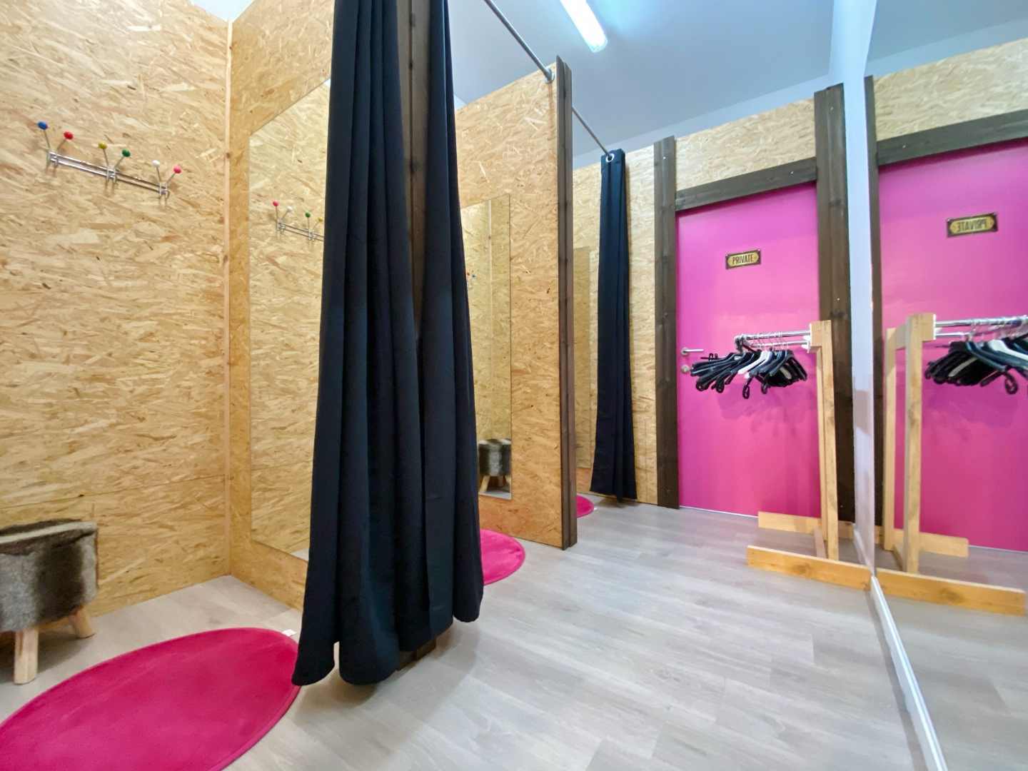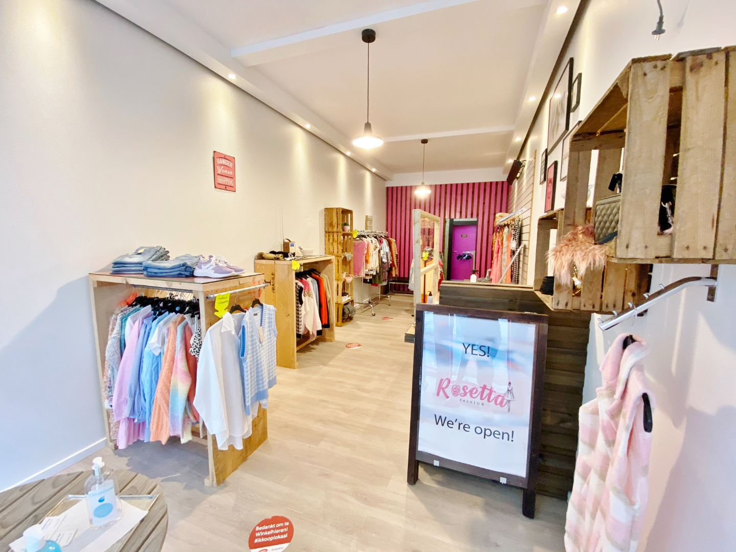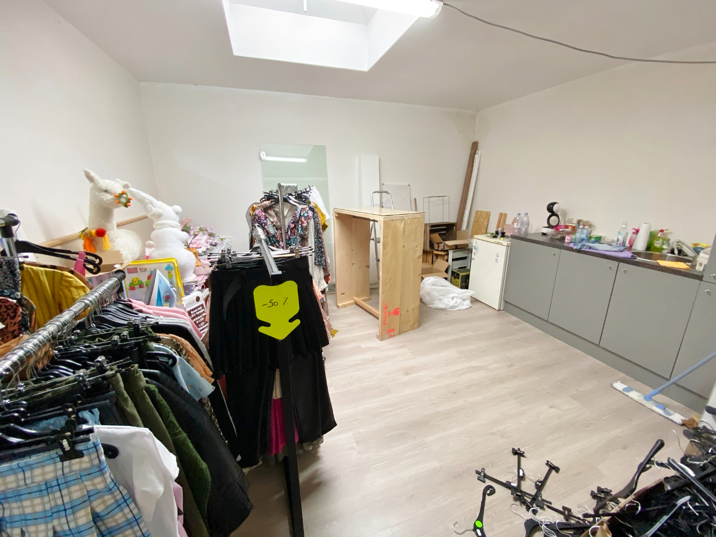 polyvalente ruimte met etalage, kleedhokjes, bergruimte met ingerichte keuken en apart toilet.