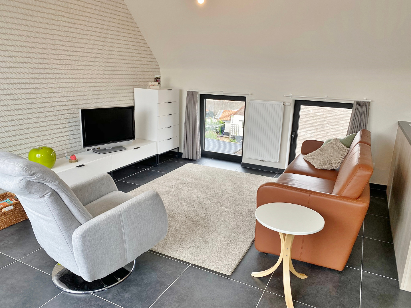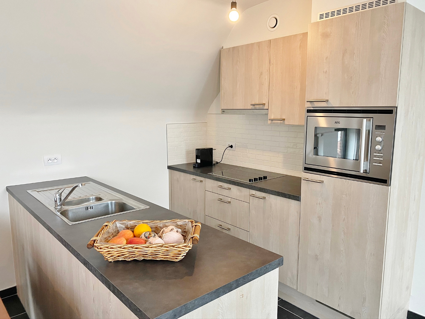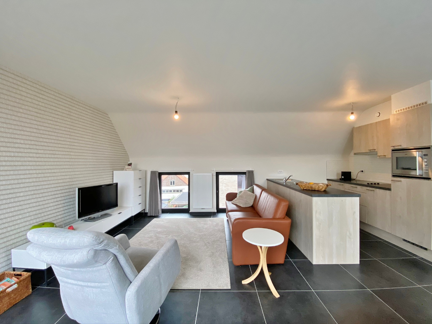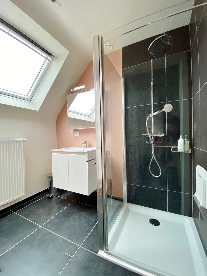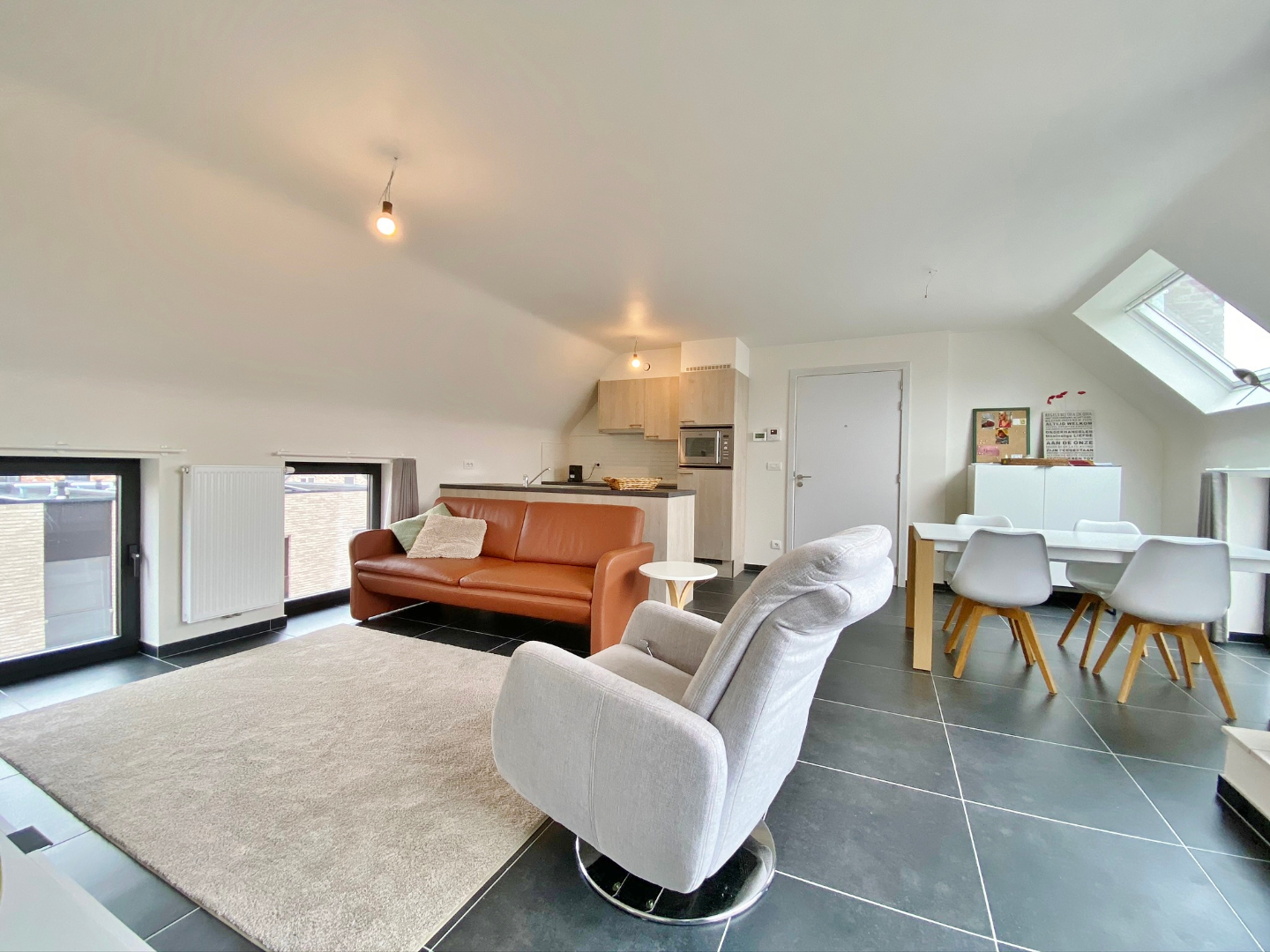 Dit appartement is gelegen in de dorpskern van Dikkebus en omvat een inkom, ruime lichtrijke leefruimte met open volledig ingerichte keuken en aansluitend terras, berging met aansluiting voor wasmachine, 2 slaapkamers en een badkamer met douche en lavabomeubel. Er zijn tevens een zolderverdiep, private overdekte autostandplaats afgesloten met automatische poort en gemeenschappelijke fiets en afvalberging.