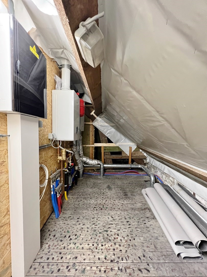 - op de tweede verdieping: 2 ruime slaapkamers en een zolderruimte.