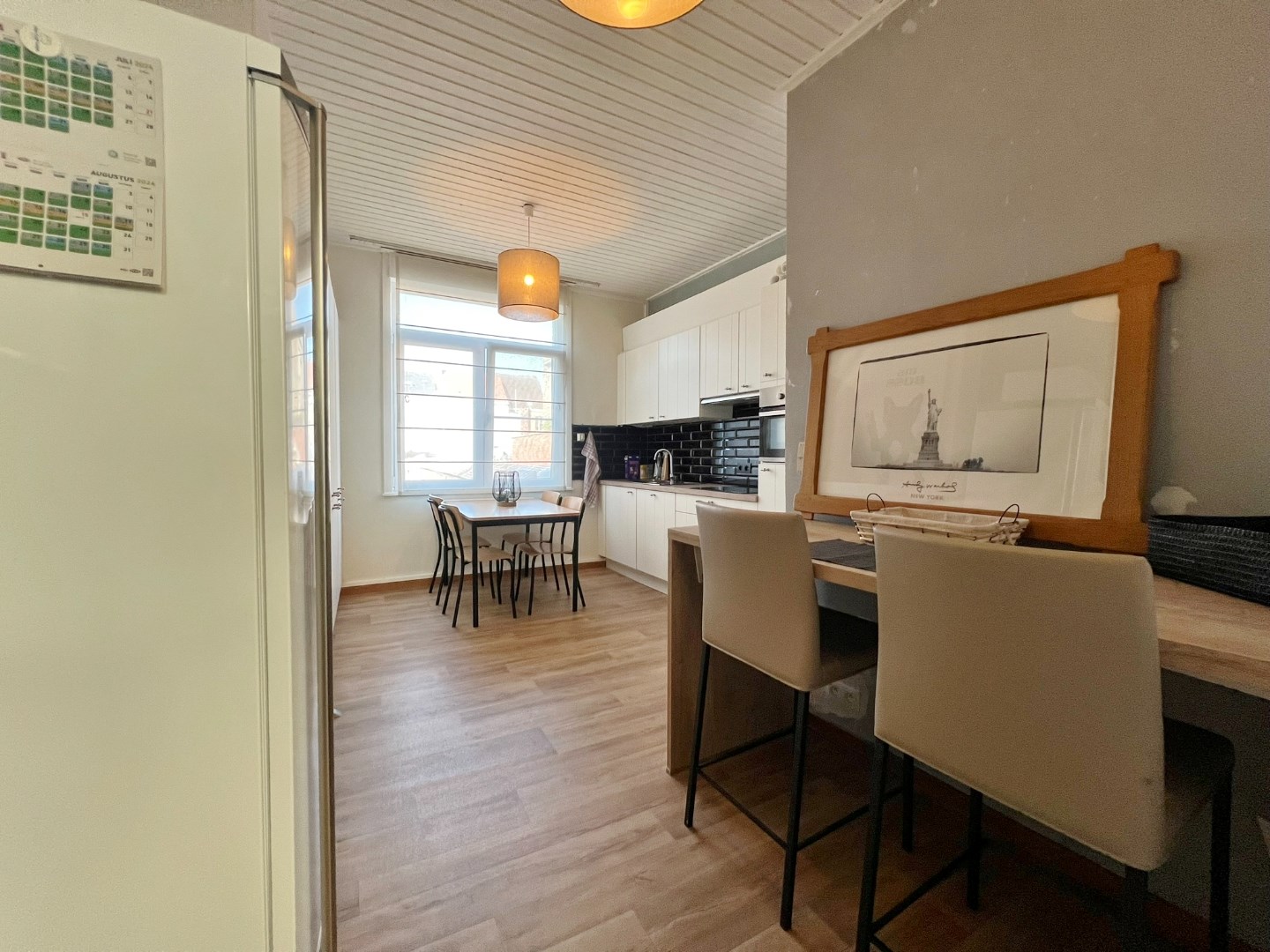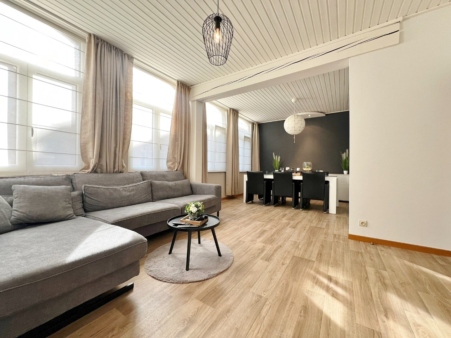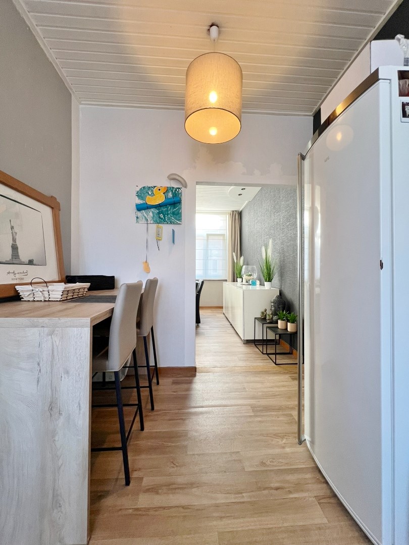 Duplex appartement gelegen op het eerste en tweede verdiep met inkom, ruime lichtrijke leefruimte met eet- en zitplaats, ingerichte keuken, badkamer met douche, lavabomeubel, toilet en aansluiting voor wasmachine en op het verdiep zijn 3 ruime slaapkamers.
