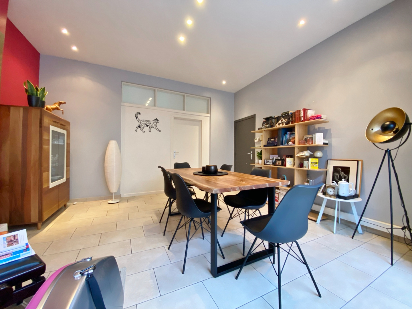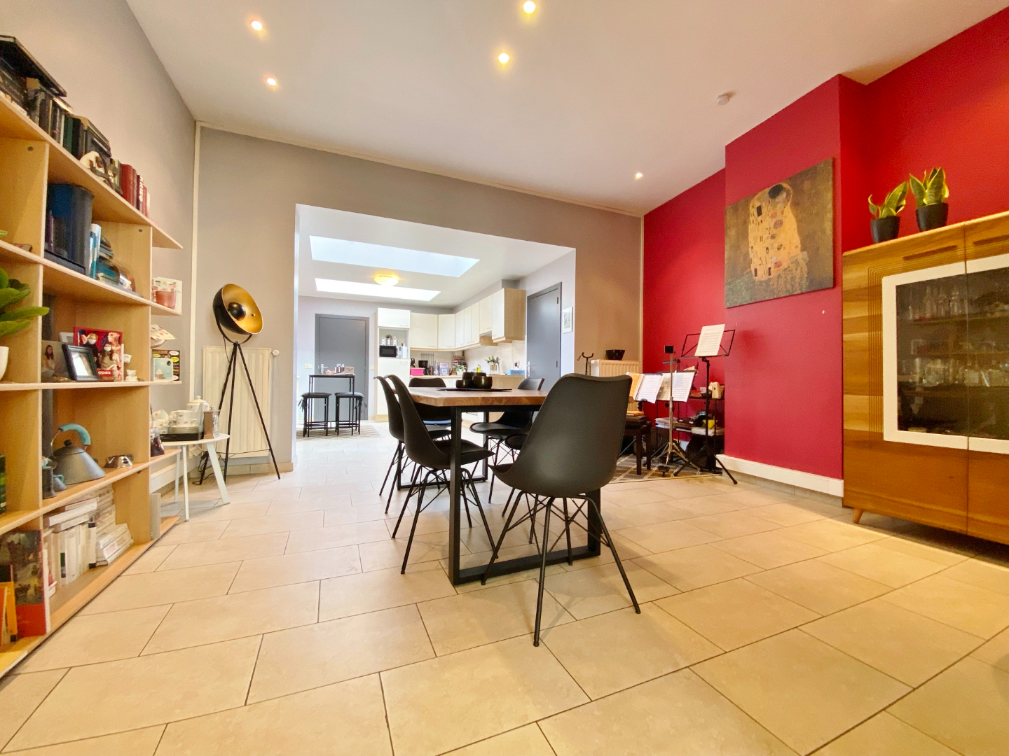 Deze woning omvat een gelijkvloerse verdieping met inkom, leefruimte met open ingerichte keuken, voorplaats ( met dubbele deur naar leefruimte )/slaapkamer/bureau, 2 bergingen, badkamer met bad en lavabomeubel. Op het eerste verdiep zijn 2 ruime slaapkamers en een tweede badkamer met douche, lavabomeubel en toilet. Op het tweede verdiep zijn 2 ruime slaapkamers en een open zolderruimte. Er is tevens een droge kelder.