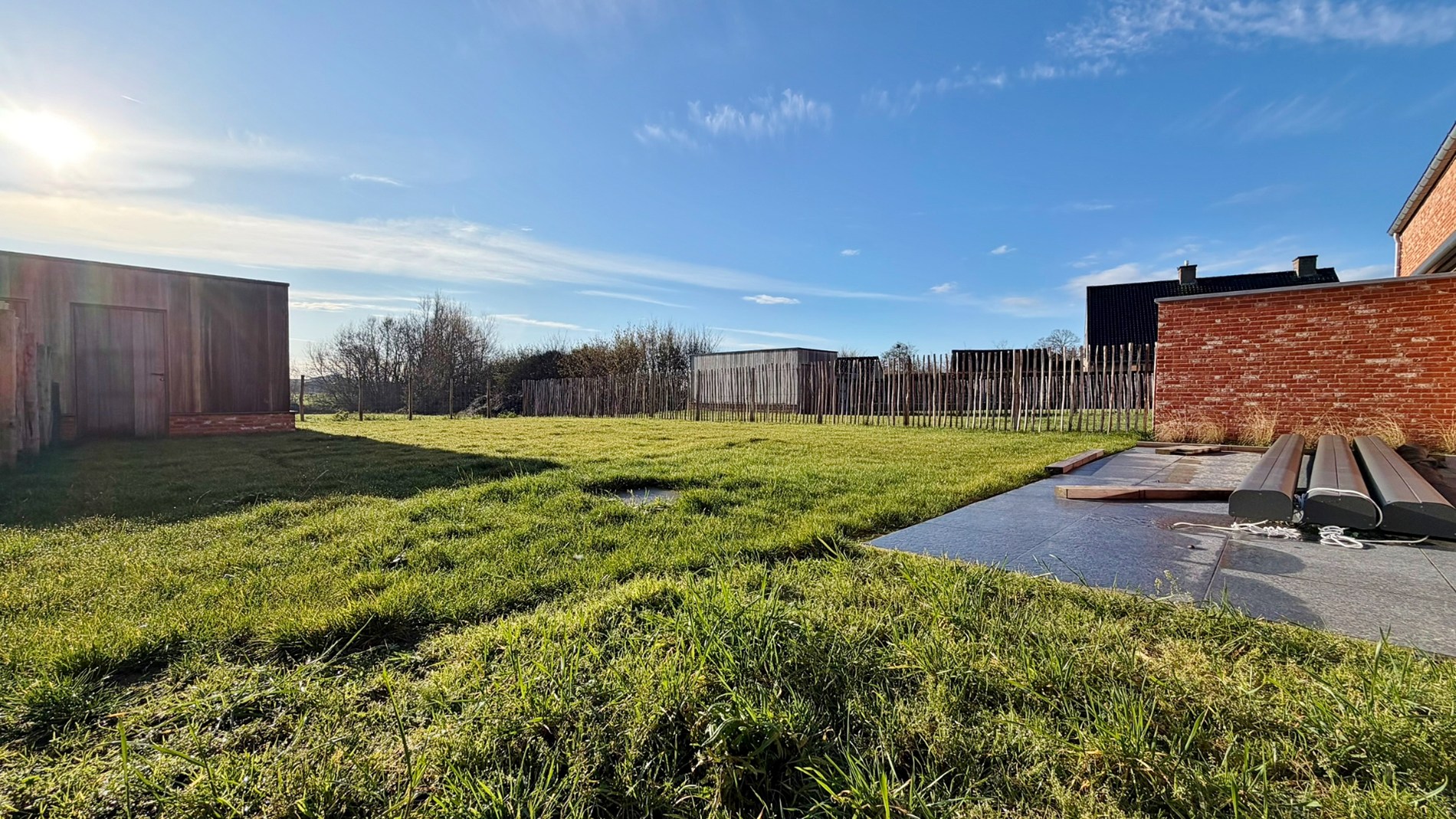 De woning beschikt over een ruime, zonnige tuin met groot terras, tuinberging en prachtig landelijk zicht. Vooraan is er een private oprit.