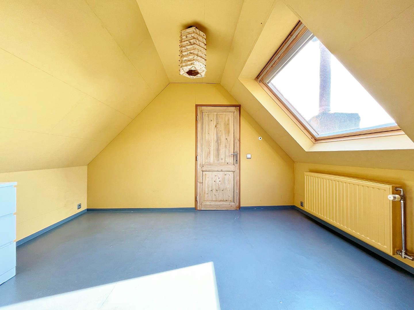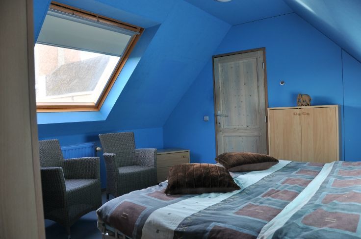 Het tweede verdiep omvat twee slaapkamers en een badkamer met lavabomeubel, douche en toilet.