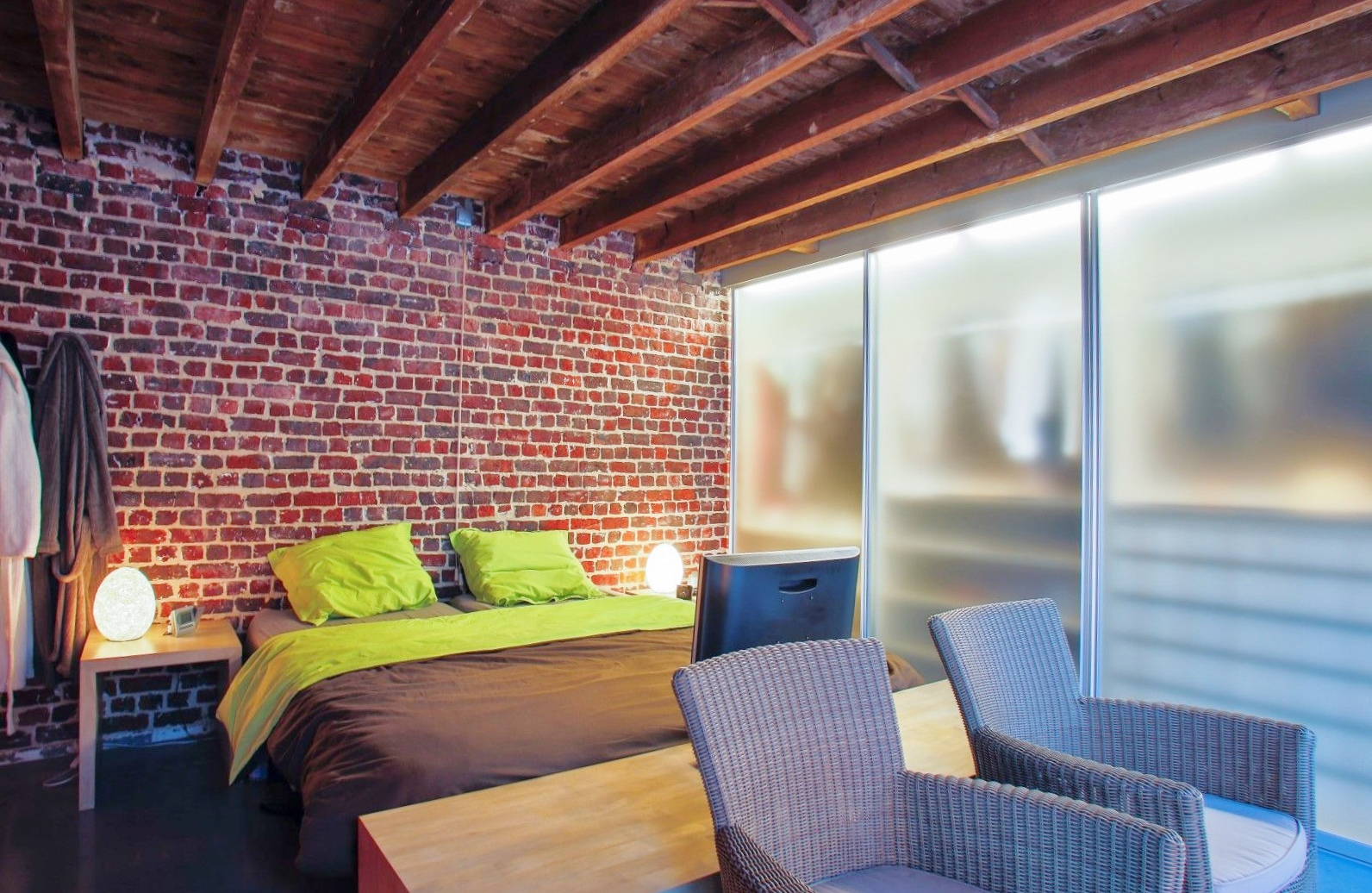 Op wandelafstand van de Grote Markt kunt u deze prachtige duplex penthouse terugvinden. Het eerste verdiep bestaat uit een inkomhal met ingebouwde kast, ruime lichtrijke leef- en eetruimte met volledig geïnstalleerde open keuken, ruime slaapkamer met dressingkast, badkamer met lavabomeubel en douche, apart toilet en een wasplaats met ingemaakte kast.