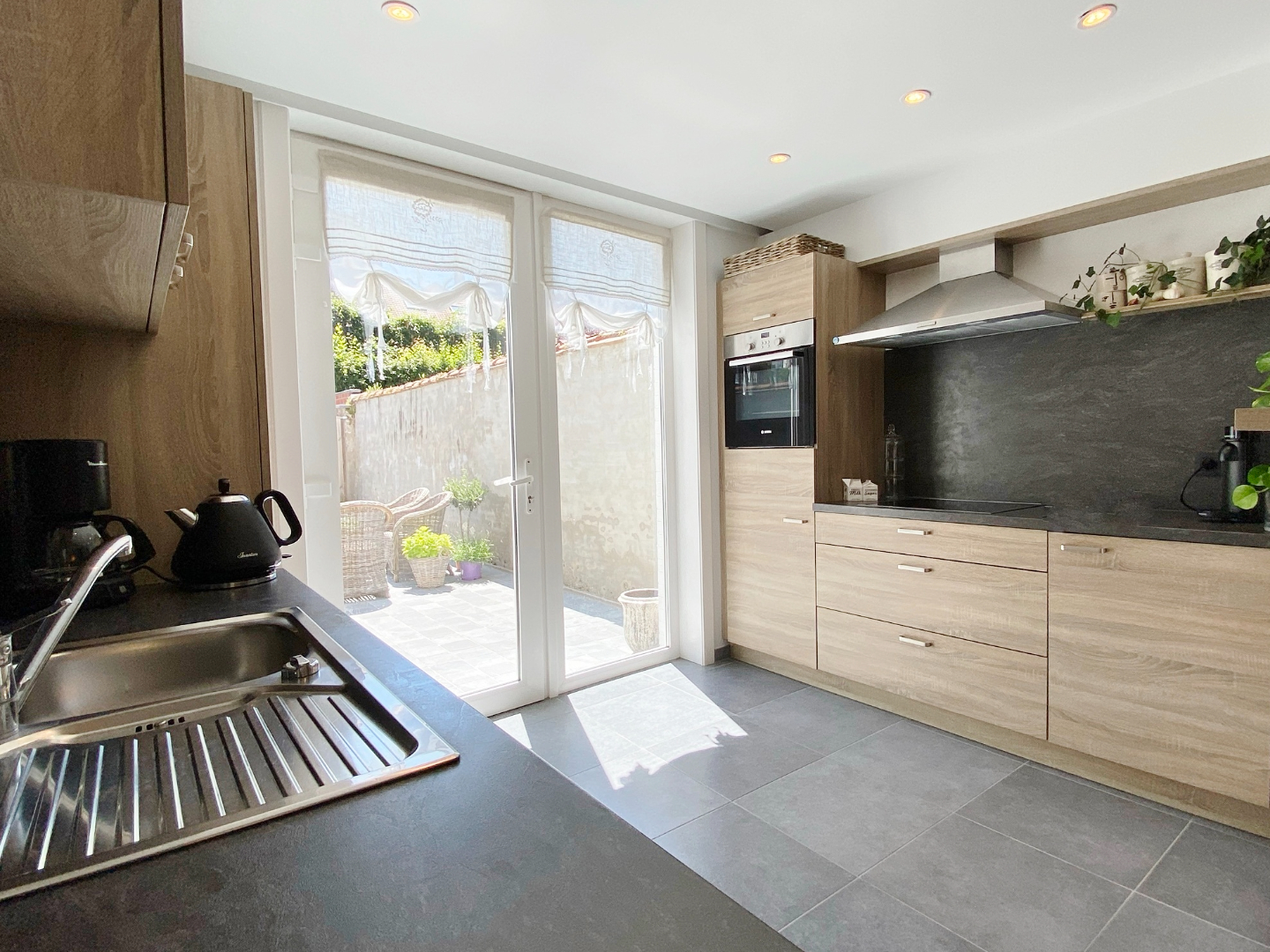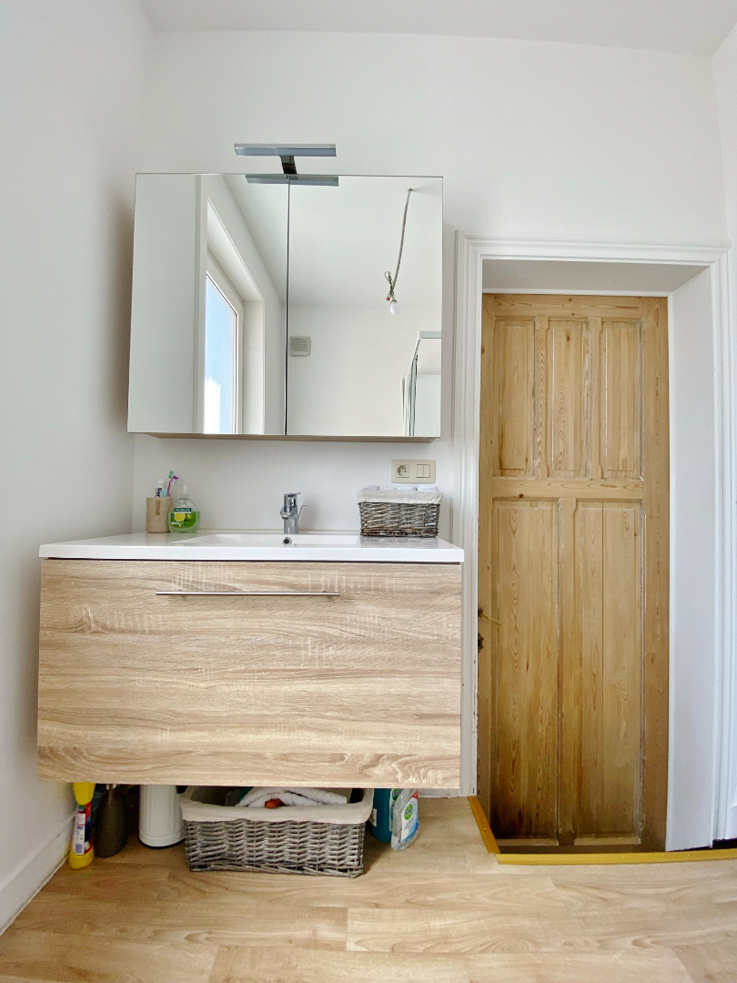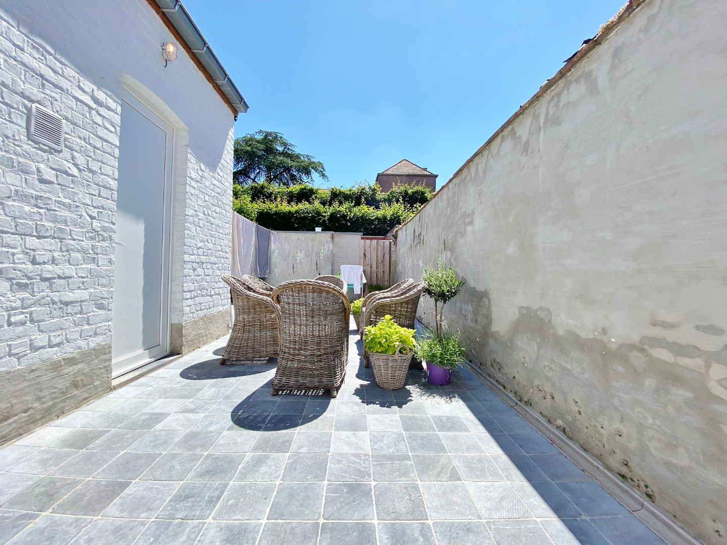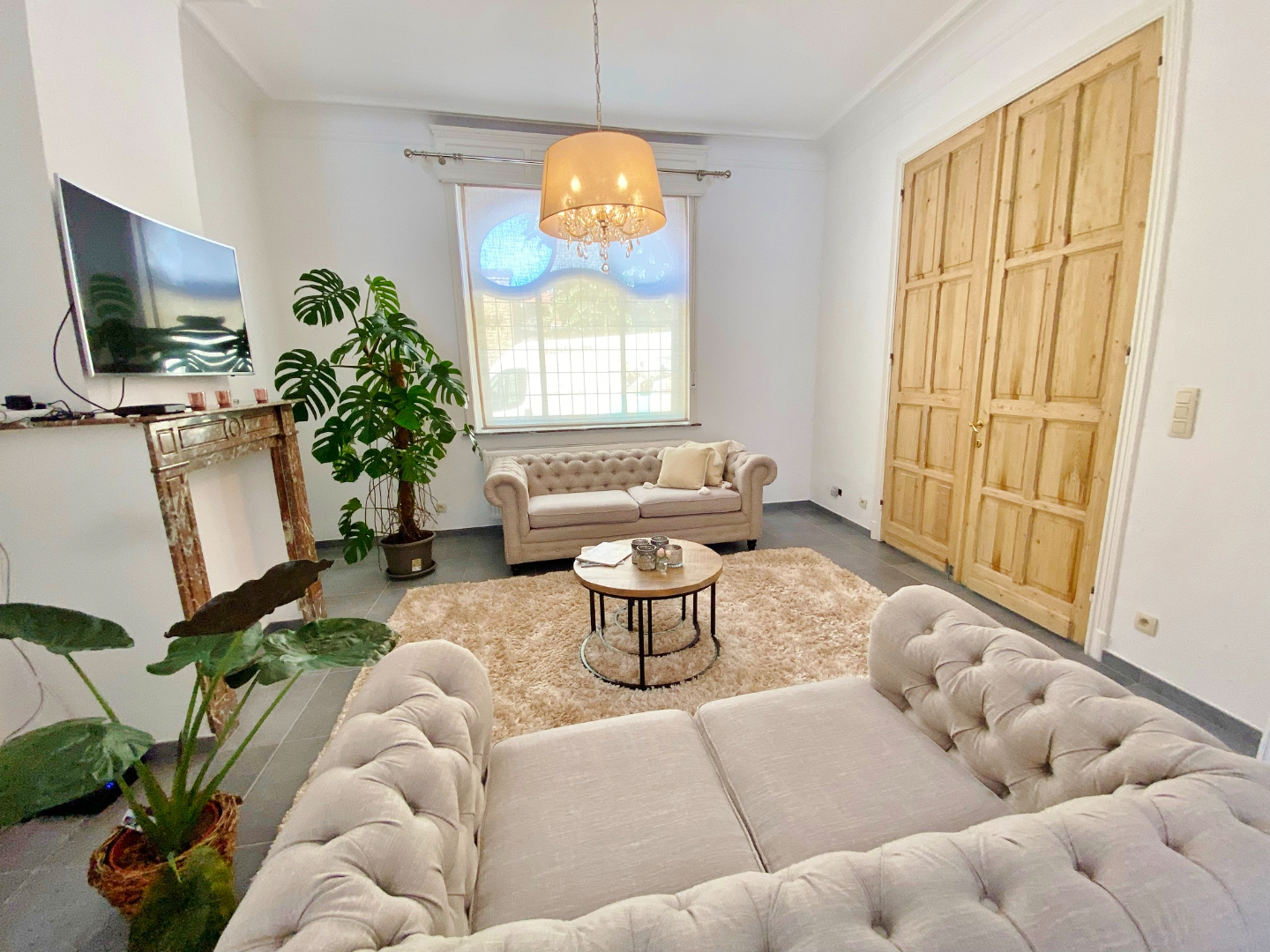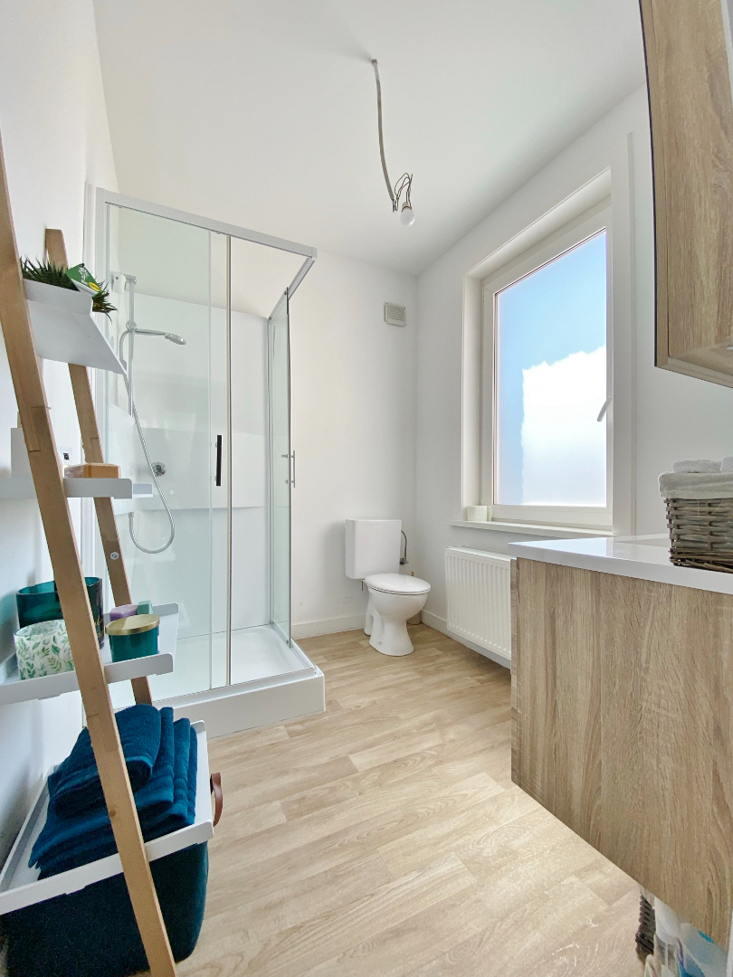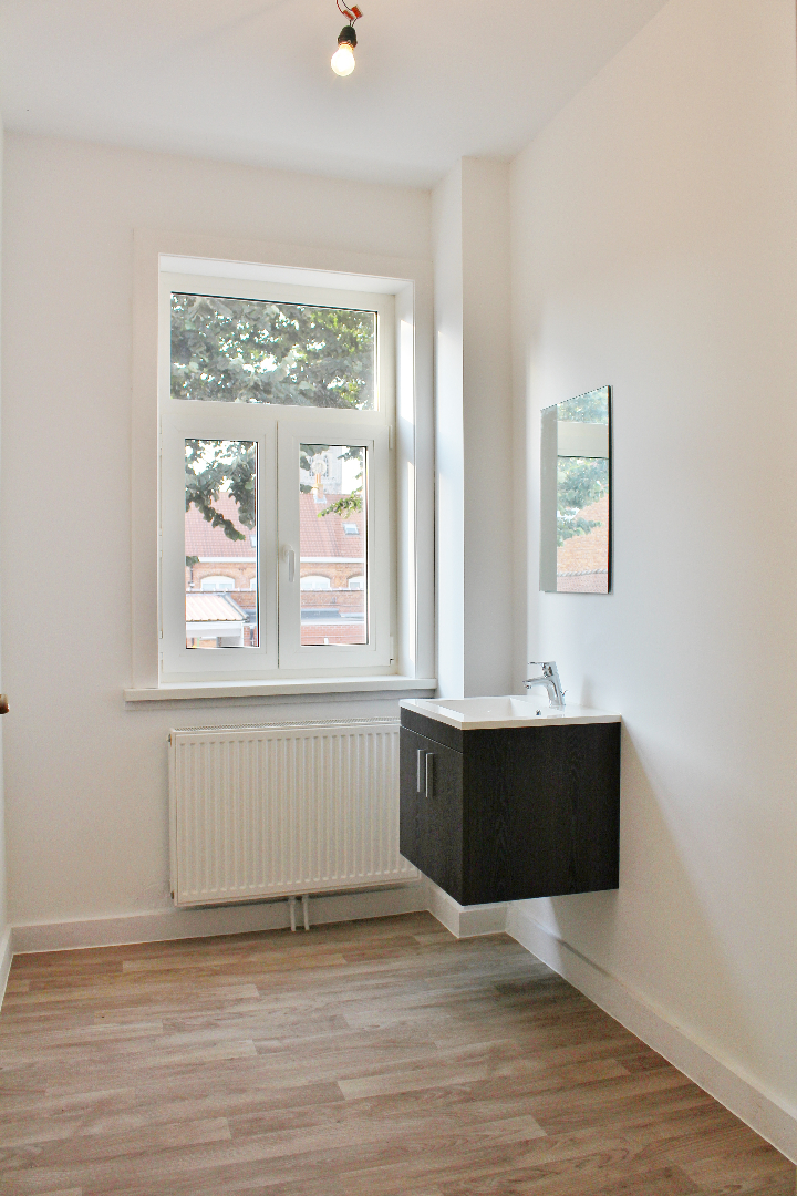 Deze woning omvat een royale inkomhal, apart toilet, leefruimte met open ingerichte keuken, wasplaats, badkamer met douche, lavabomeubel en toilet, 3 ruime slaapkamers, 1 extra kamer met lavabomeubel.