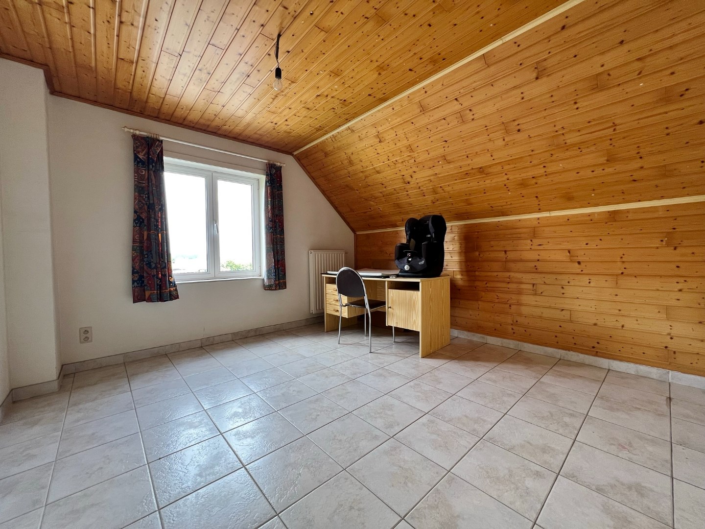 Deze eigendom omvat een gelijkvloerse verdieping met inkom, toilet, ruime lichtrijke leefruimte, bureau, volledig ingerichte keuken, bergruimte, wasplaats, slaapkamer en badkamer. Op het eerste verdiep zijn 3 ruime slaapkamers en een zolderruimte. Buiten zijn een voor- en achtertuin en parkeerplaats voor verschillende wagens.