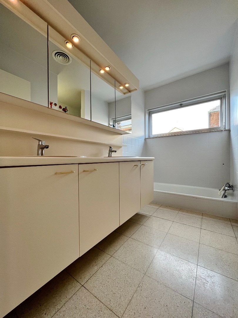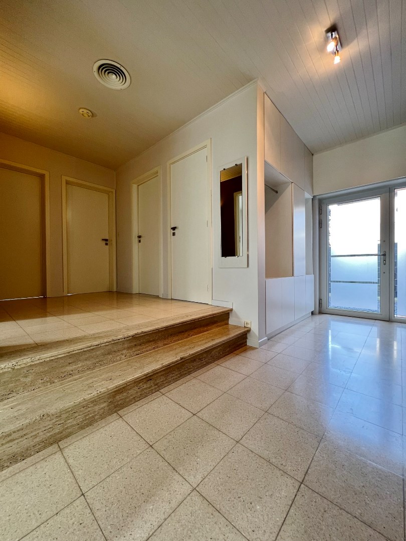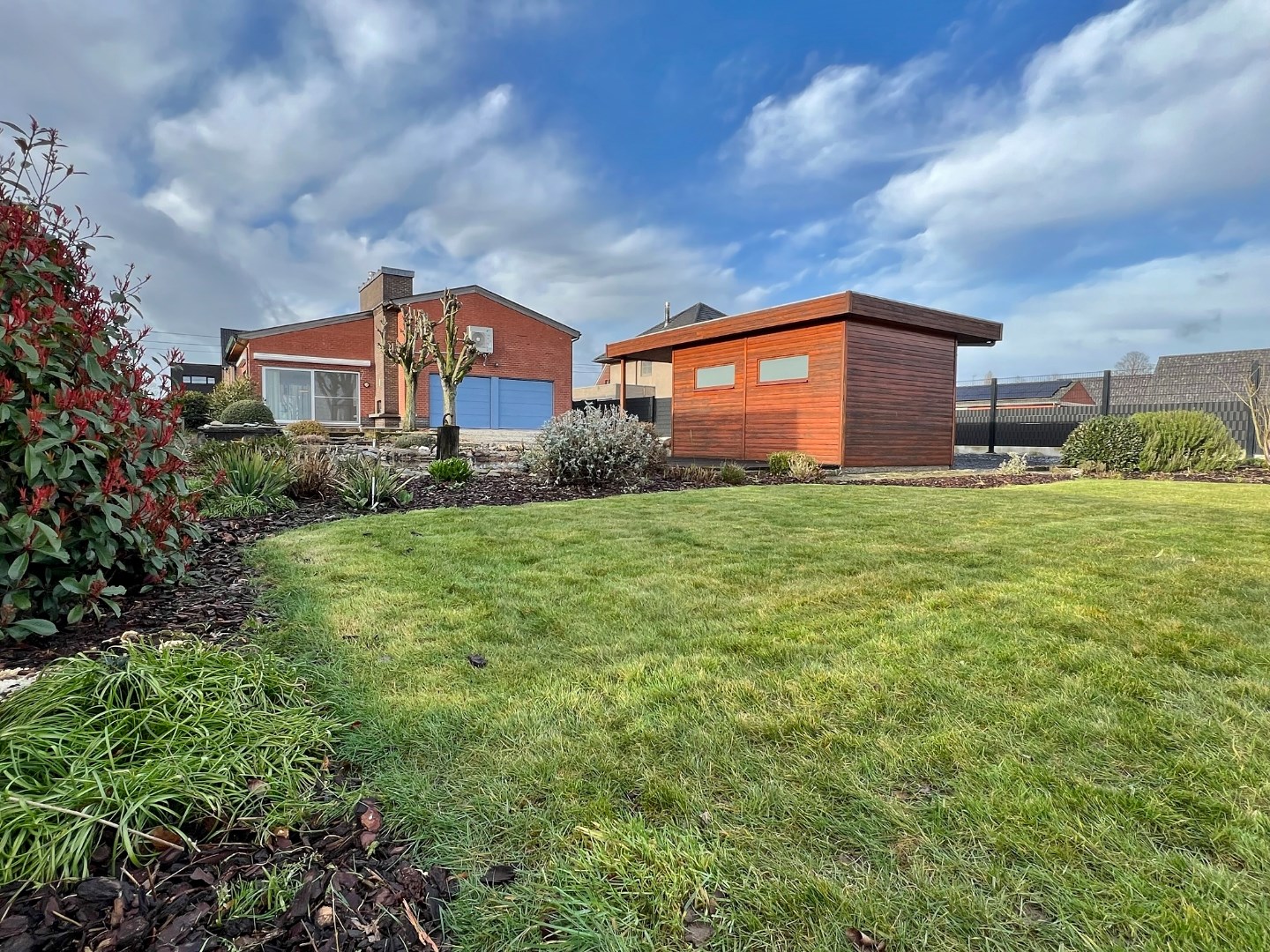 Deze woning omvat een inkomhal met ingemaakte kasten, apart toilet, ruime lichtrijke leefruimte met gezellige gashaard, volledig ingerichte keuken, bergruimte, wasplaats, 3 ruime slaapkamers en een badkamer met lavabomeubel, ligbad en douche. Er is tevens een ruime dubbele garage.