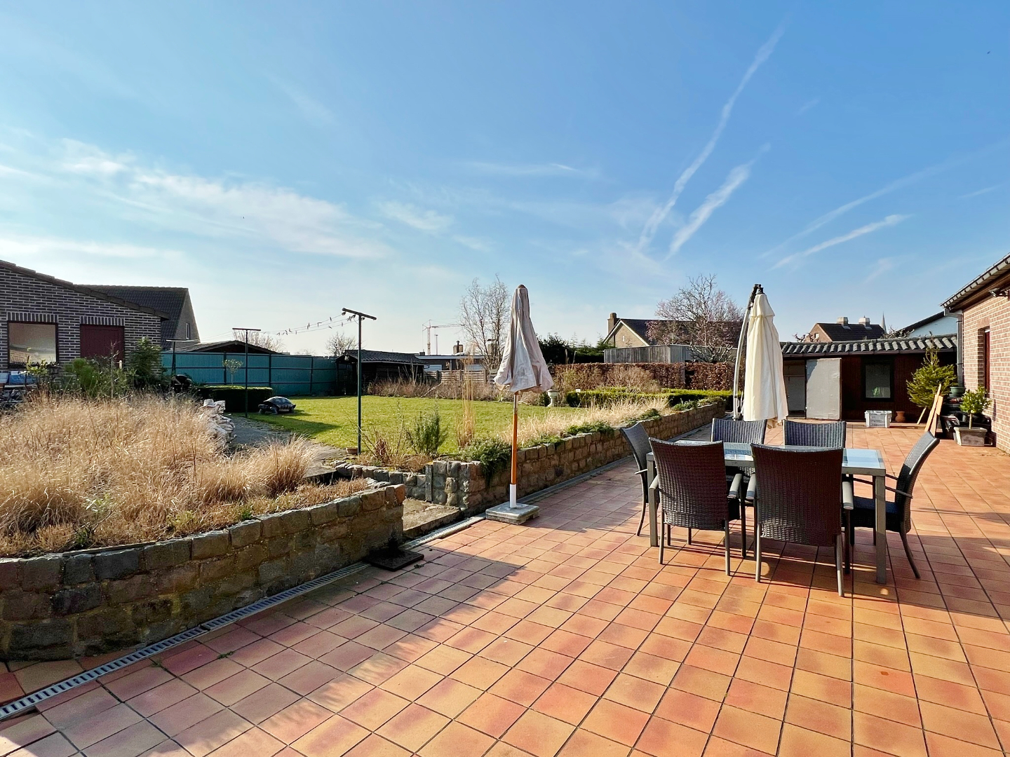 Buiten vinden we een prachtige voortuin en een grote zuid-west gerichte achter tuin met verschillende buitenbergingen.