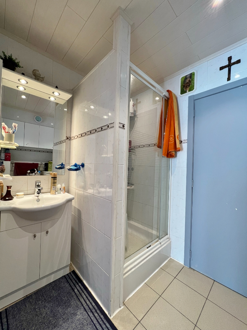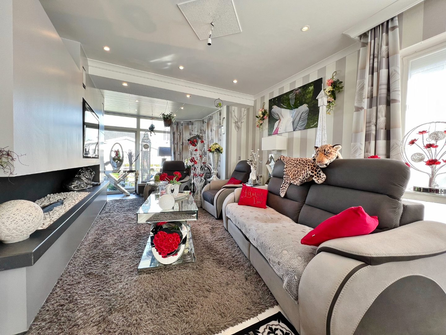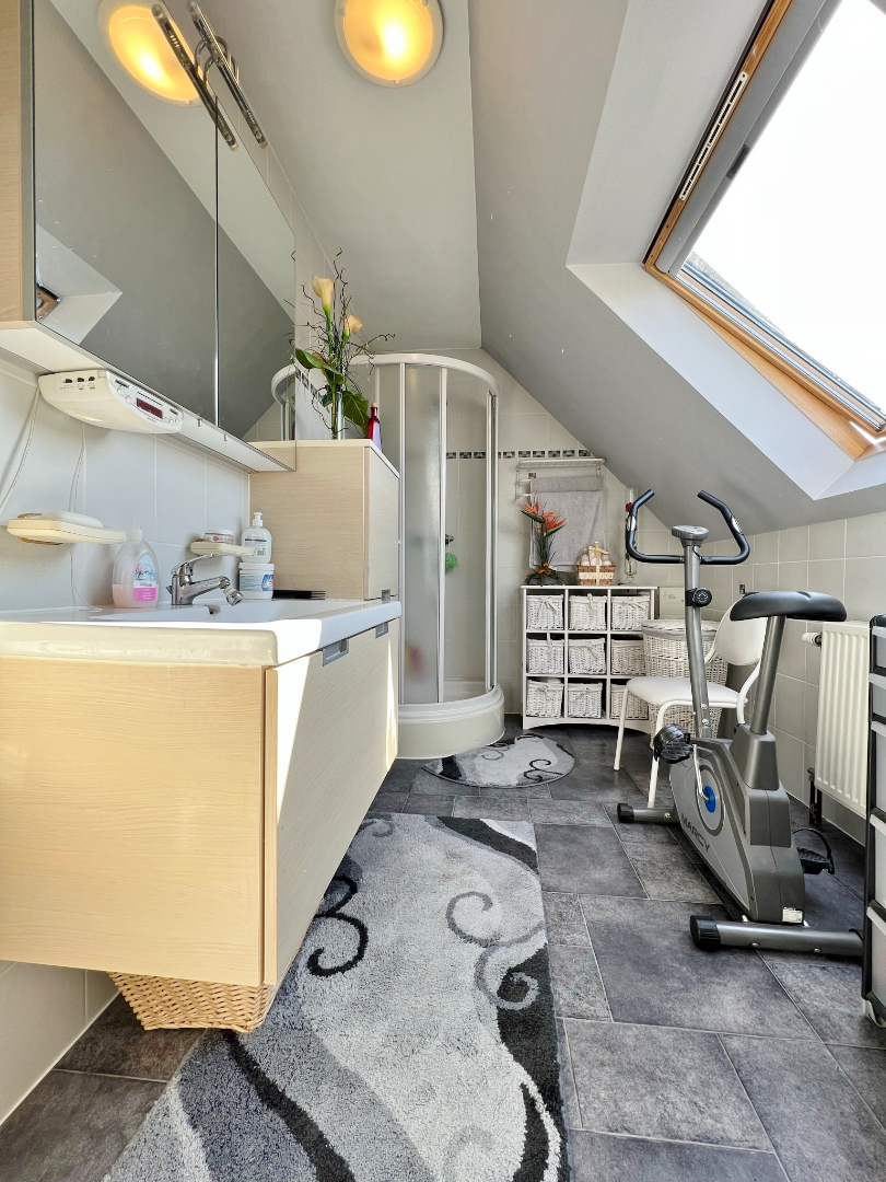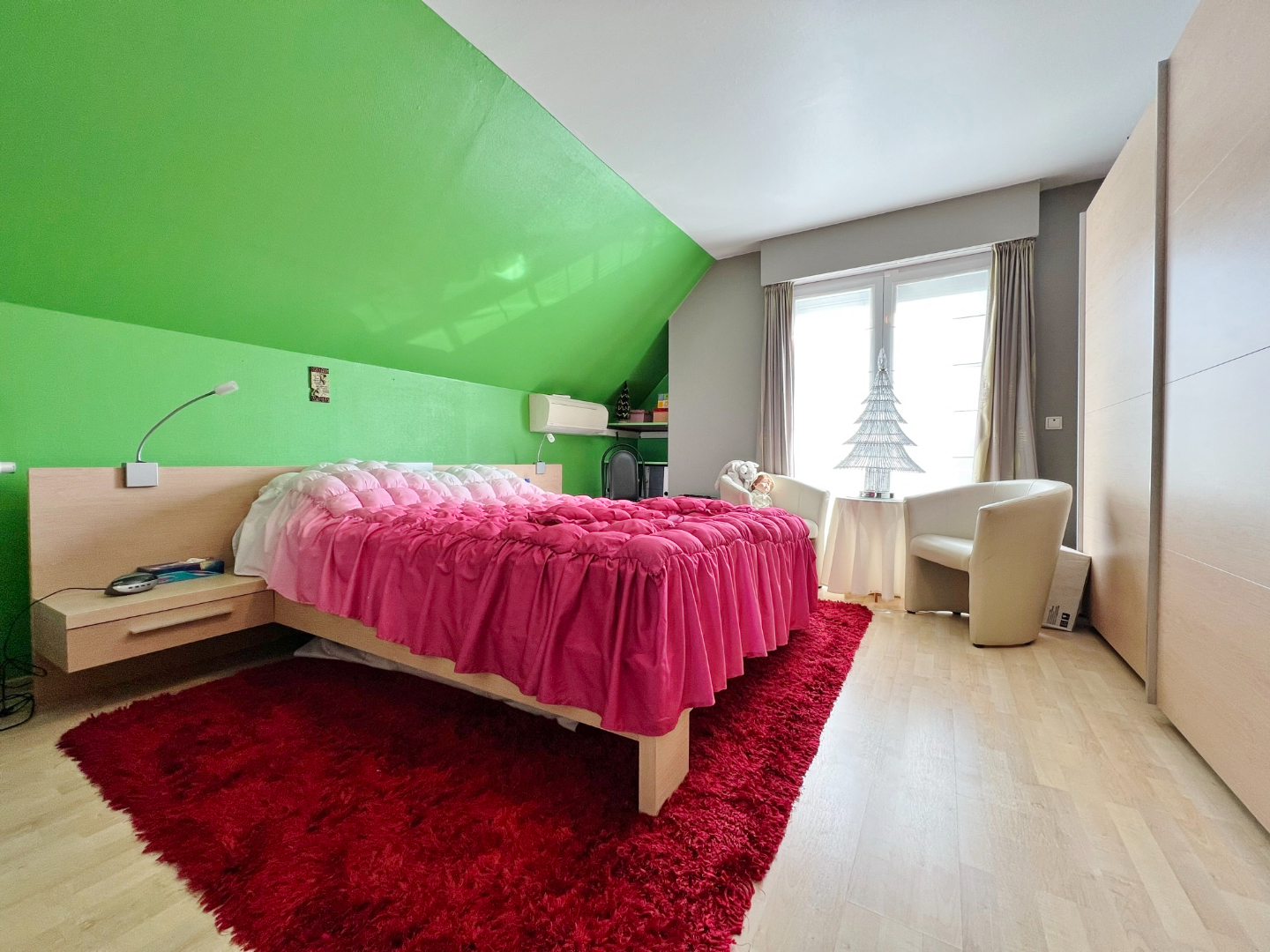 Deze goed onderhouden woning omvat een gelijkvloerse verdieping met inkom, gastentoilet, ruime lichtrijke leefruimte, halfopen volledig ingerichte keuken met eetplaats en zithoek, slaapkamer, badkamer met douche en lavabomeubel en wasplaats. Op het tweede verdiep zijn 3 ruime slaapkamers en een badkamer met douche, lavabomeubel en toilet. Buiten is een volledig afgesloten tuin met terras, tuinhuis en carport.