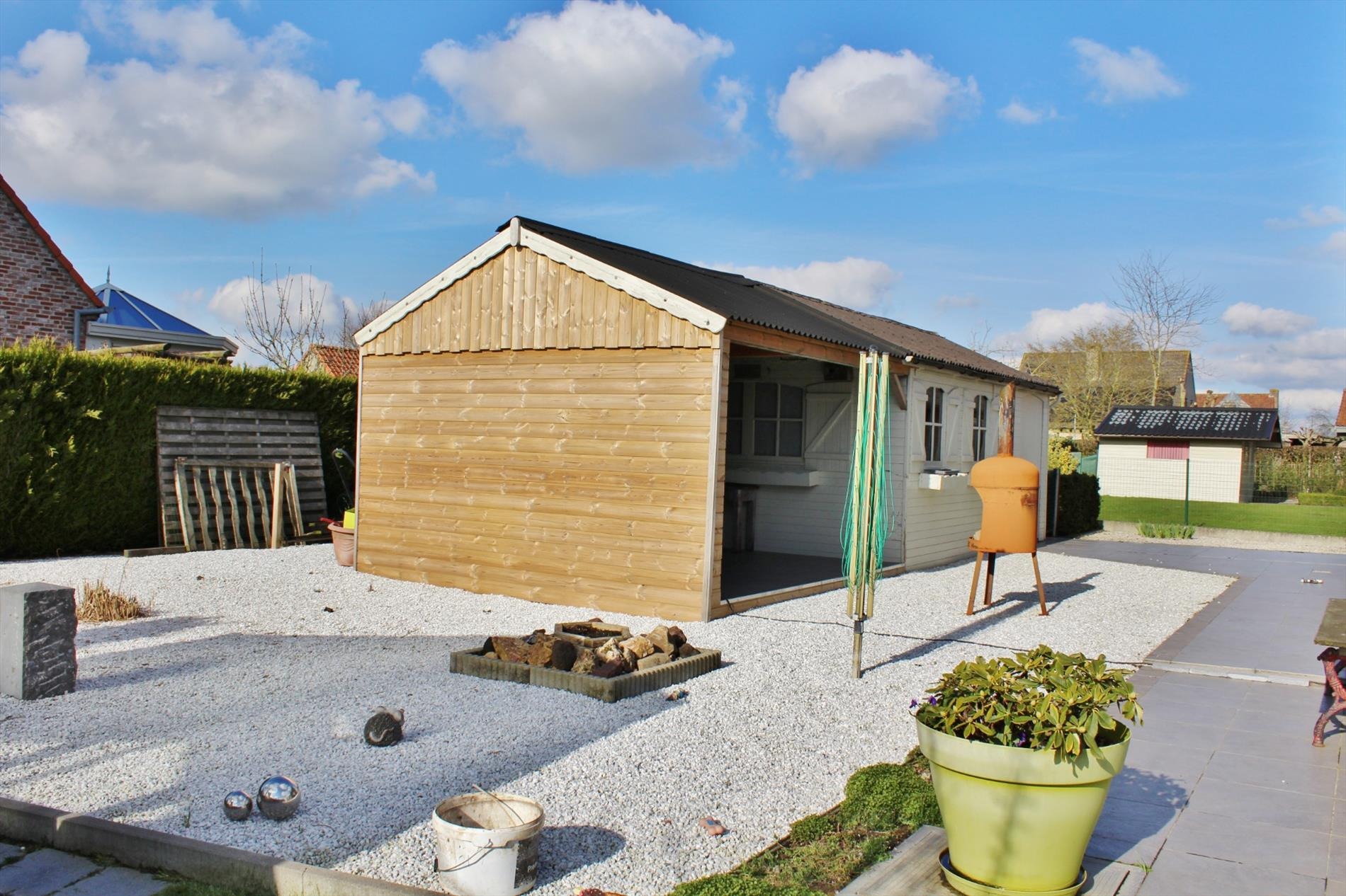 Rondom de woning vinden we een prachtig aangelegde tuin met groot terras, ruime oprit en een recente buitenberging.