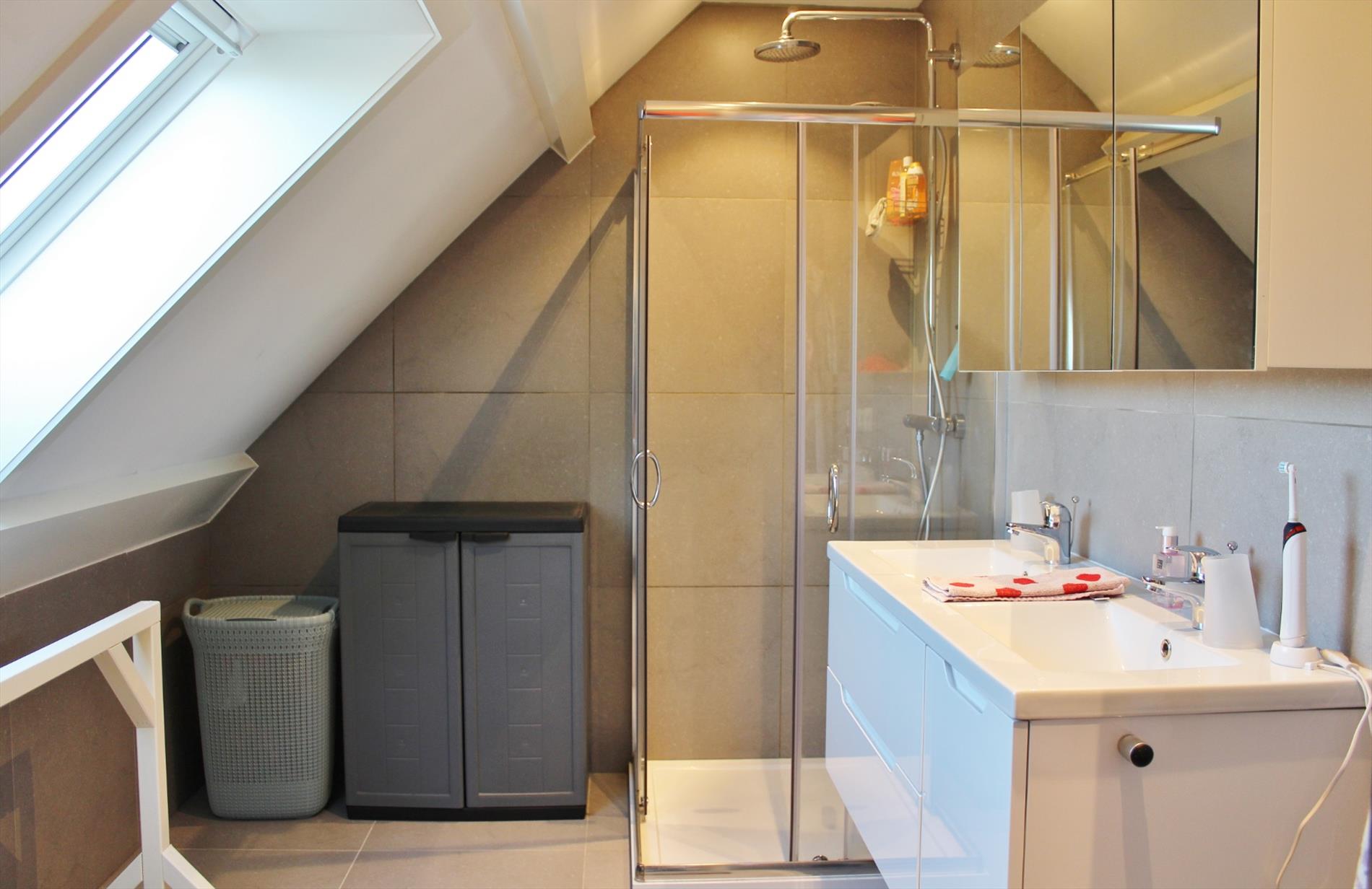 Deze woning werd in 2017 volledig vernieuwd en omvat een gelijkvloerse verdieping met inkom, gastentoilet, ruime lichtrijke leefruimte met open (bureau) ruimte en open zicht op de tuin, een open volledig ingerichte keuken met aansluitende bergruimte voorzien van aansluiting voor wasmachine, garage met sectionale poort, slaapkamer en badkamer met lavabomeubel en douche. Op het eerste verdiep zijn 3 ruime slaapkamers en een badkamer met douche, lavabomeubel en toilet. Buiten is een volledig afgesloten zuid-gerichte tuin met aangelegd terras en een ruime buitenberging/werkplaats.
