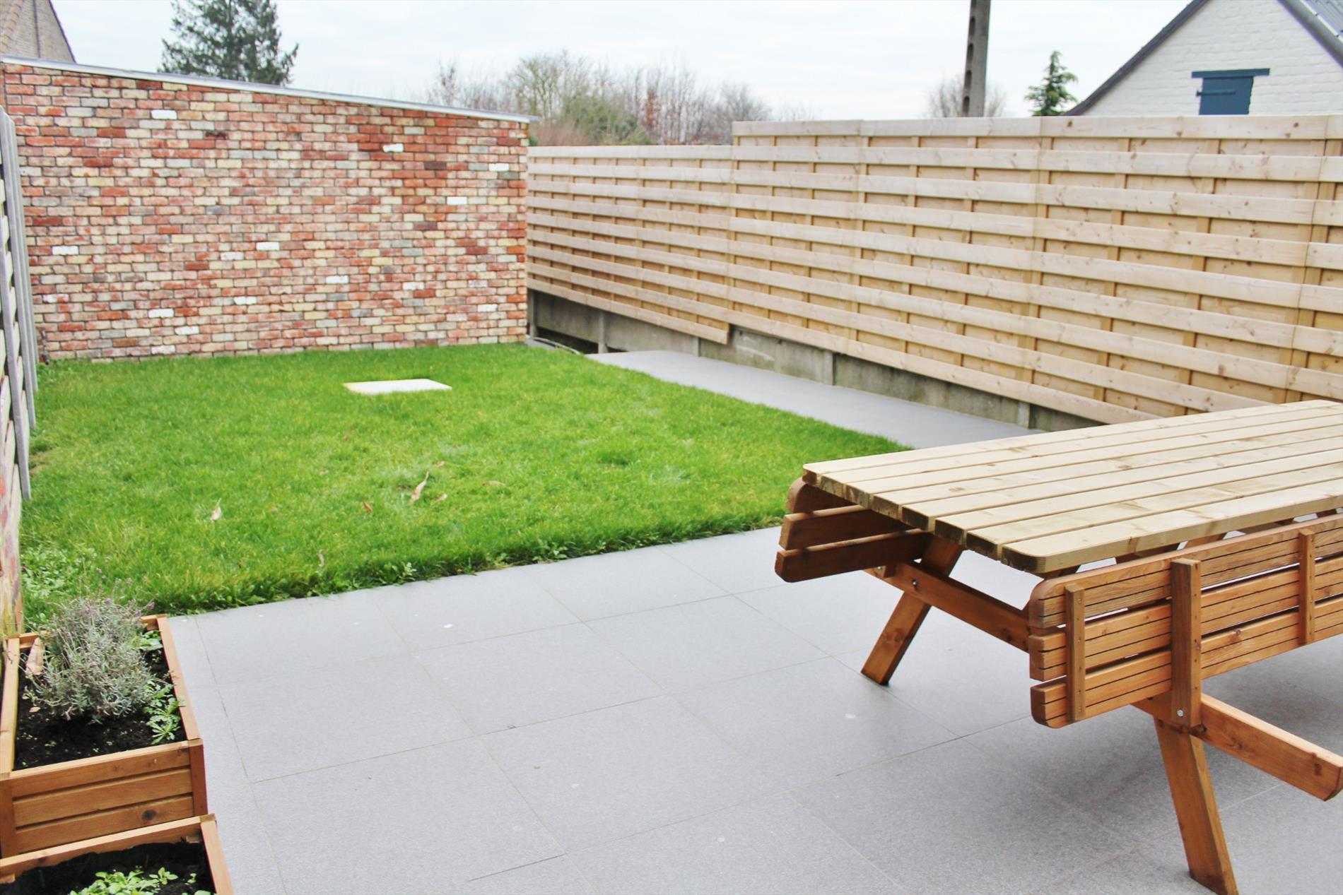 Buiten is een gezellige afgesloten tuin, de woning is bereikbaar langs achter waar ook een ruime garage is.