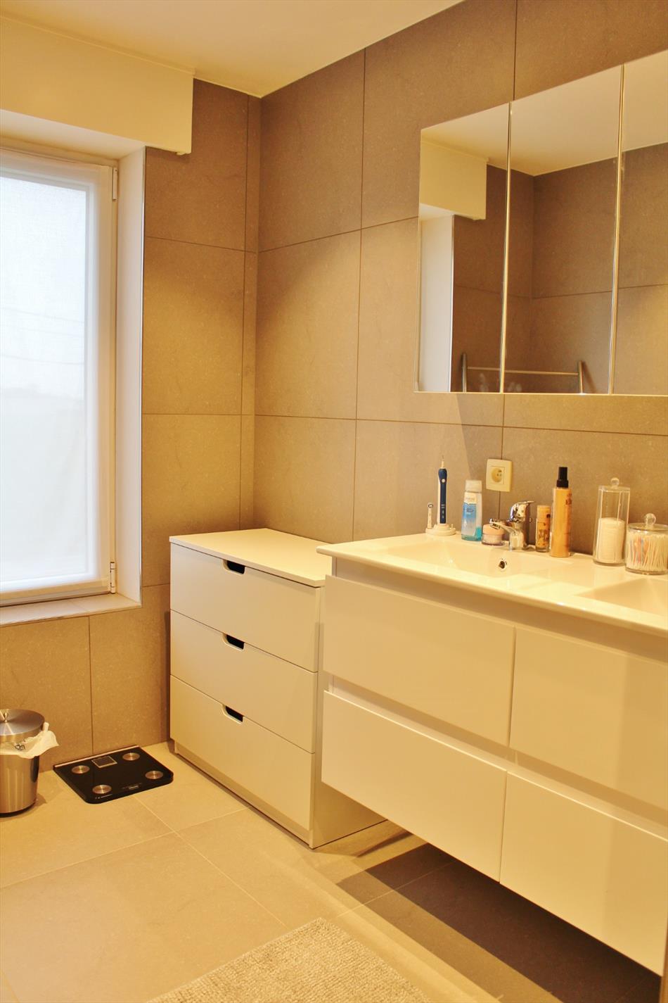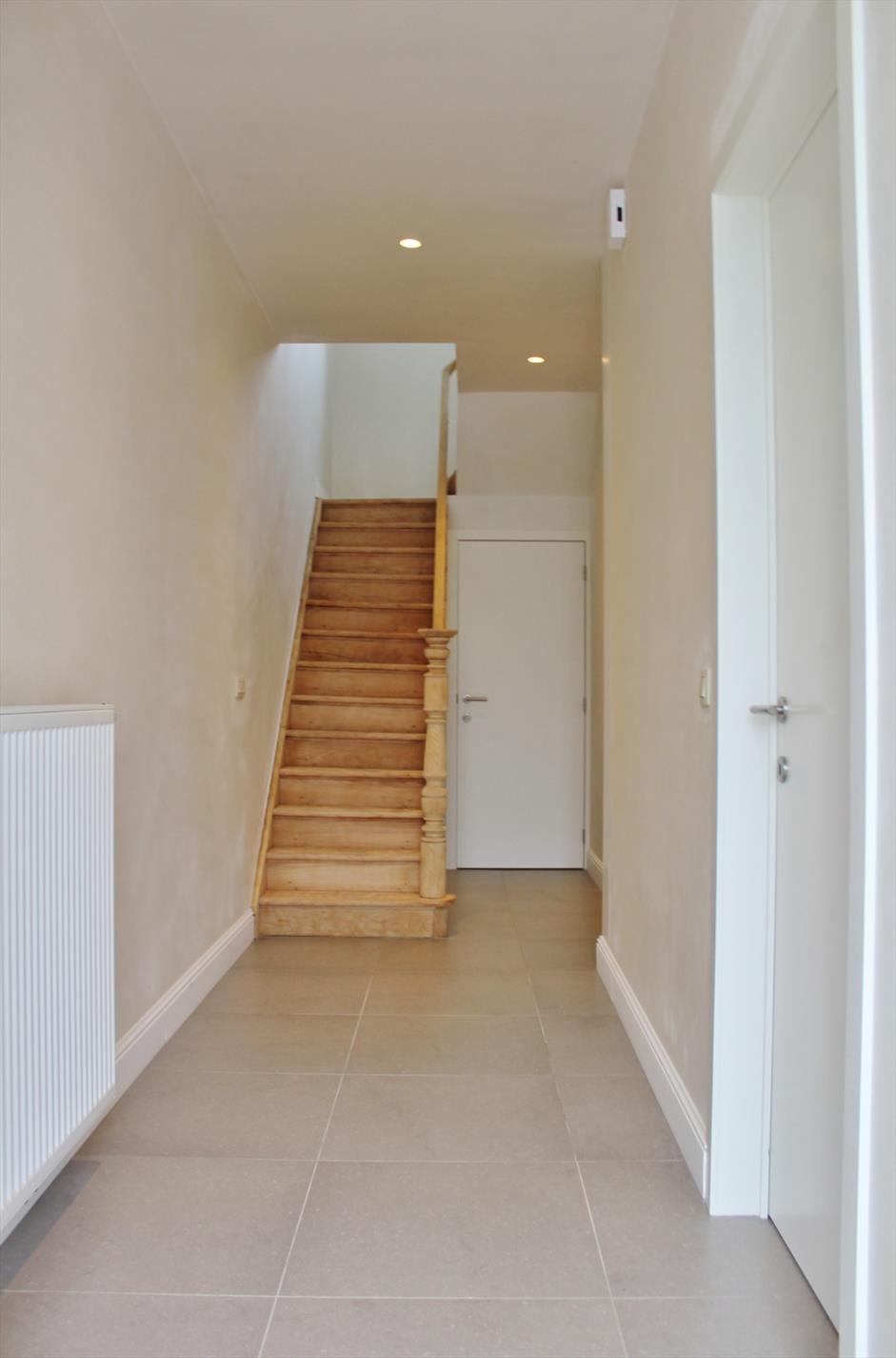 Deze eigendom werd volledig vernieuwd en omvat een gelijkvloerse verdieping met inkomhal, gastentoilet, ruime lichtrijke leefruimte met eet- en zitplaats, volledig ingerichte open keuken en een ruime bergplaats met aansluiting voor wasmachine. Op het eerste verdiep zijn 2 ruime slaapkamers, een apart toilet en een badkamer met inloopdouche en dubbel lavabomeubel. Op het tweede verdiep is een 3de ruime slaapkamer en een zolderruimte.