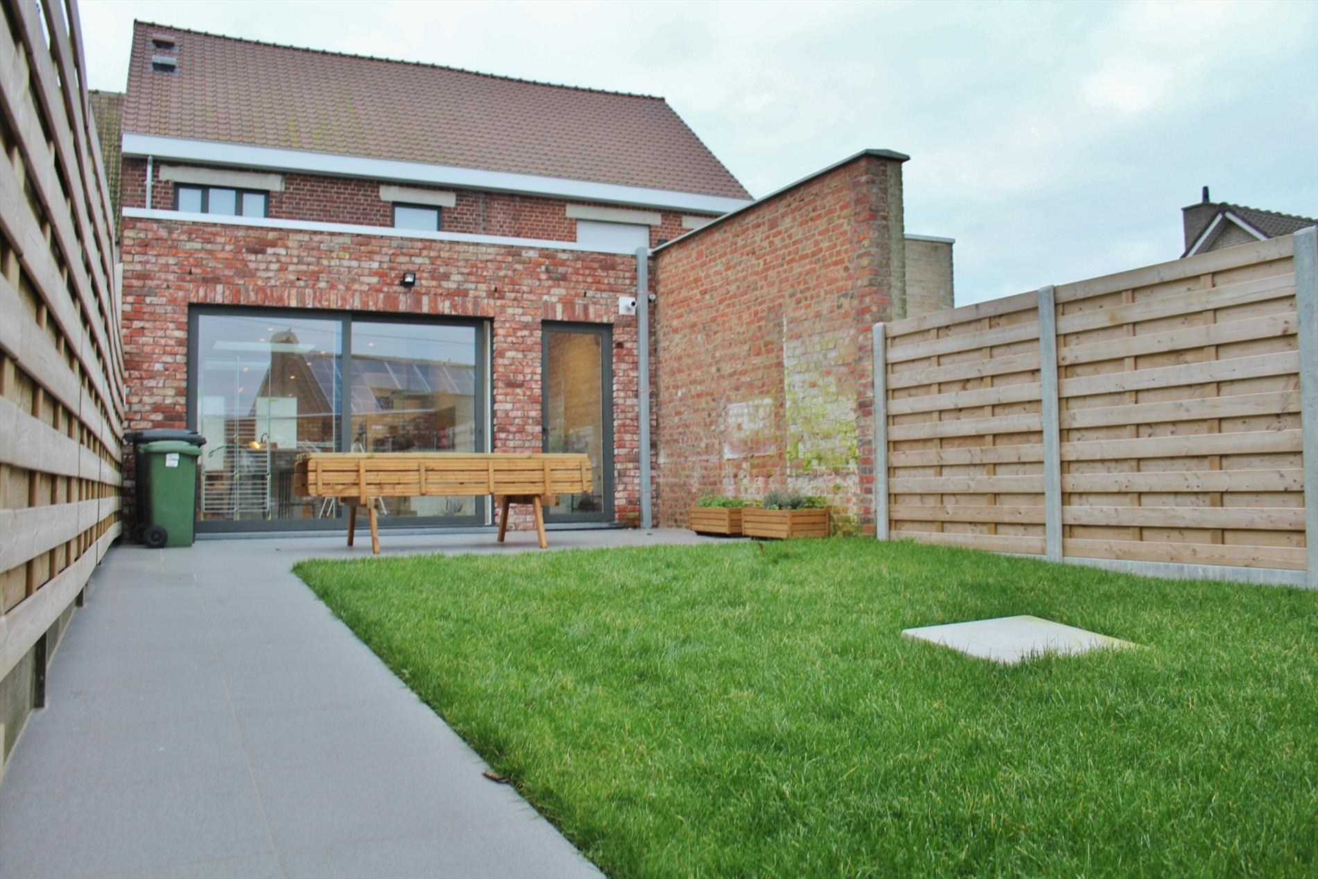 Buiten is een gezellige afgesloten tuin, de woning is bereikbaar langs achter waar ook een ruime garage is.
