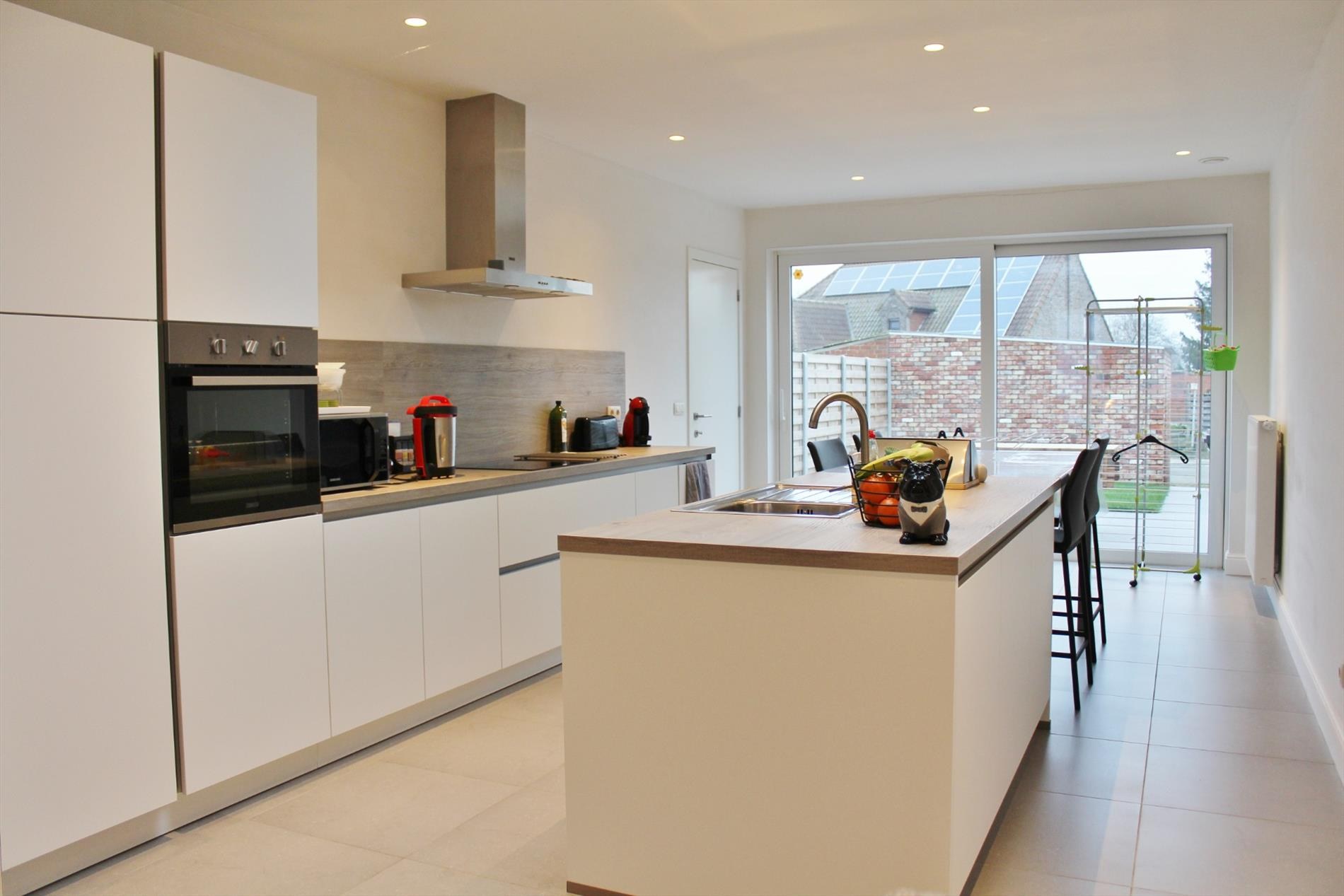 Deze eigendom werd volledig vernieuwd en omvat een gelijkvloerse verdieping met inkomhal, gastentoilet, ruime lichtrijke leefruimte met eet- en zitplaats, volledig ingerichte open keuken en een ruime bergplaats met aansluiting voor wasmachine. Op het eerste verdiep zijn 2 ruime slaapkamers, een apart toilet en een badkamer met inloopdouche en dubbel lavabomeubel. Op het tweede verdiep is een 3de ruime slaapkamer en een zolderruimte.