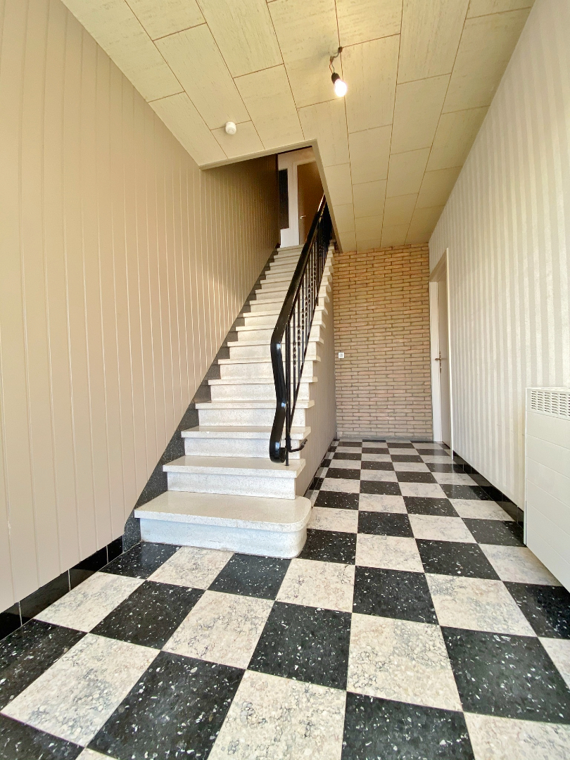 Deze woning is centraal gelegen en omvat een gelijkvloerse verdieping met inkom, ruime lichtrijke leefruimte met inbouwcassette, vernieuwde keuken, apart toilet, ruime garage met bergruimte en aansluiting voor wasmachine. Op het eerste verdiep zijn 3 ruime slaapkamers en een badkamer met ligbad, lavabomeubel en toilet. Er zijn tevens een kelder en zolder. Buiten is er een tuin met terras.