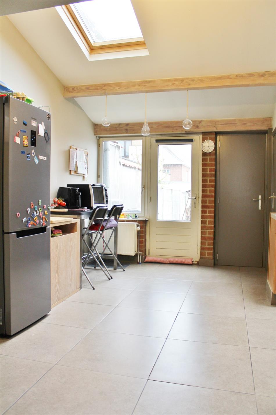 Deze woning is zeer centraal gelegen en omvat een gelijkvloerse verdieping met inkom, bergplaats, ruime lichtrijke leefruimte met volledig ingerichte open keuken, bergplaats, badkamer met douche, lavabo, aansluiting voor wasmachine en droogkast en apart toilet. Op het eerste verdiep zijn 2 ruime slaapkamers. Op het tweede verdiep zijn tevens 2 ruime slaapkamers en een bergplaats.