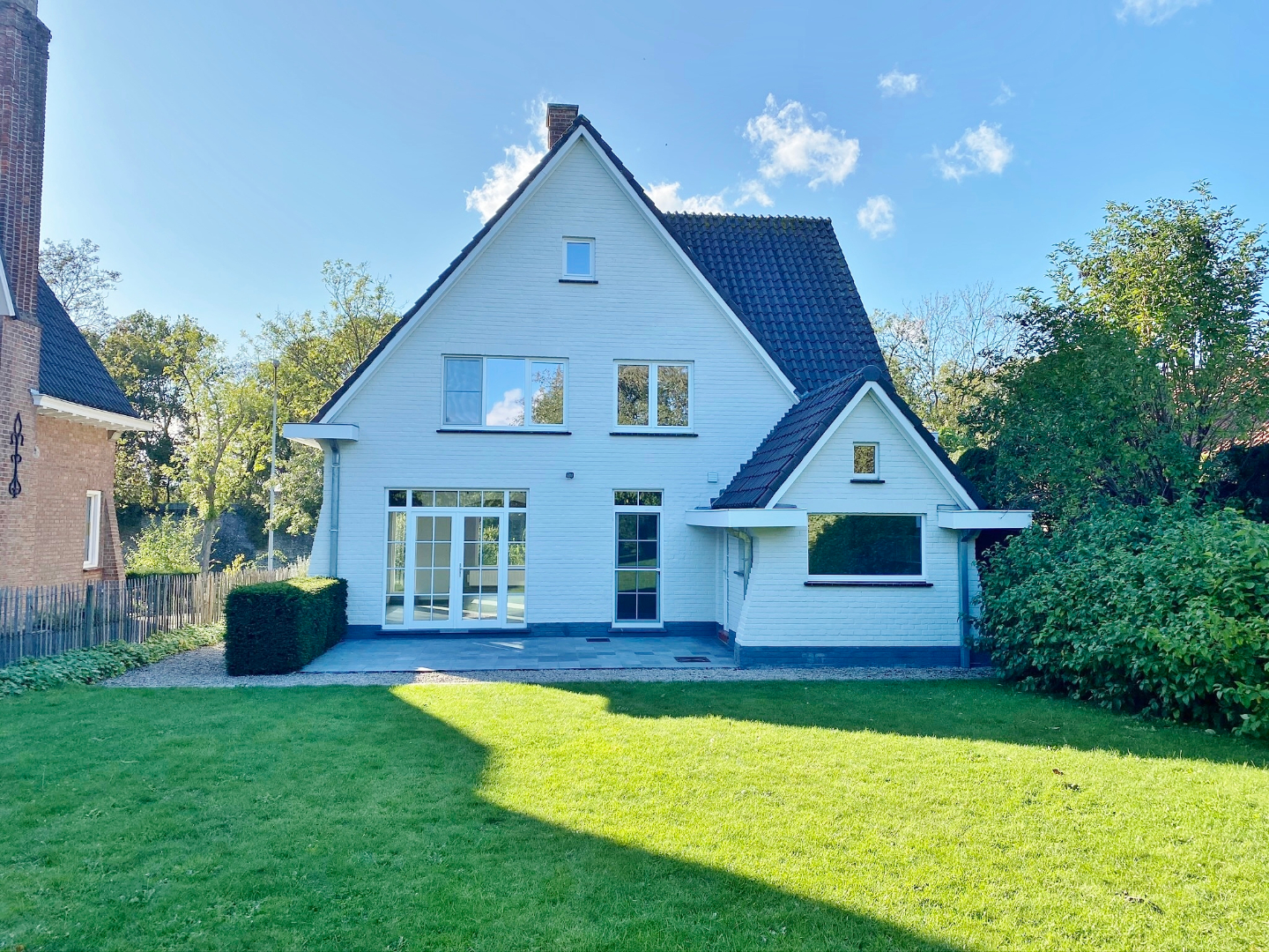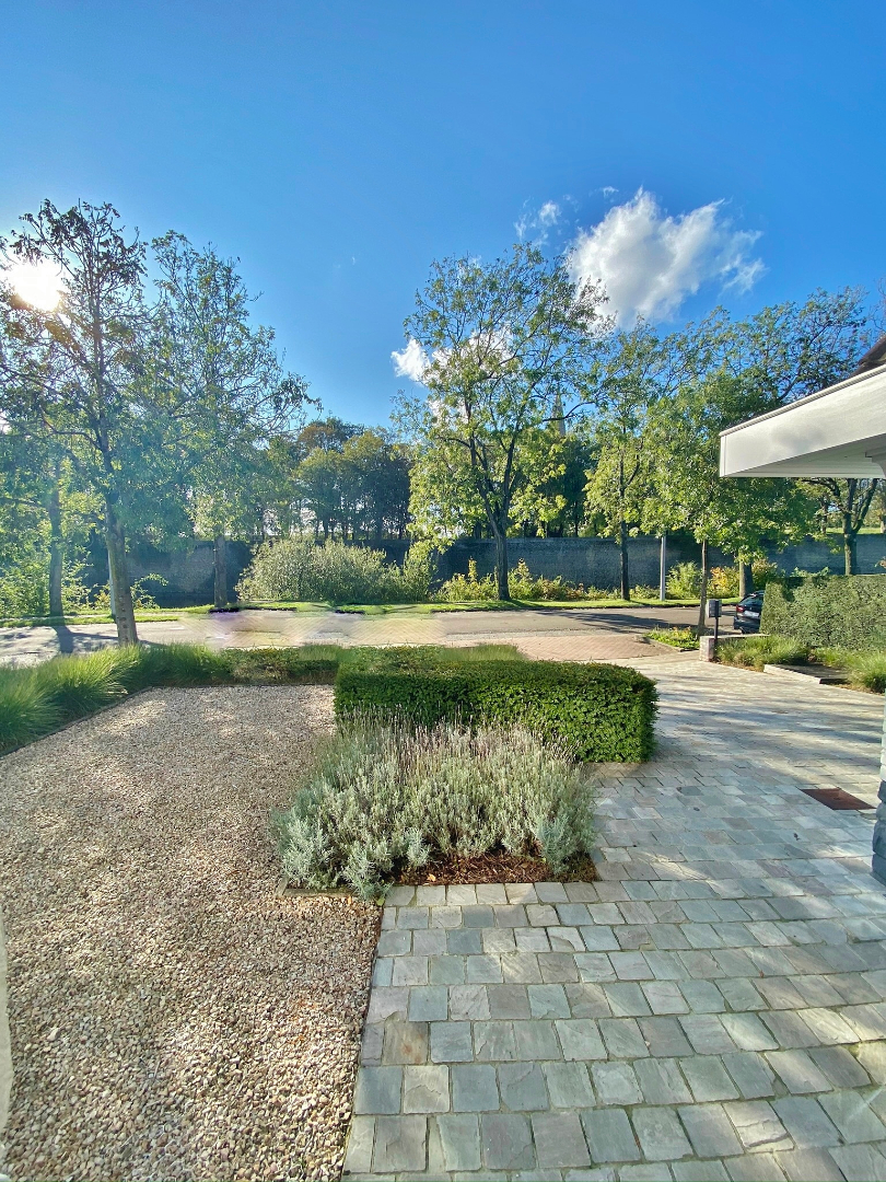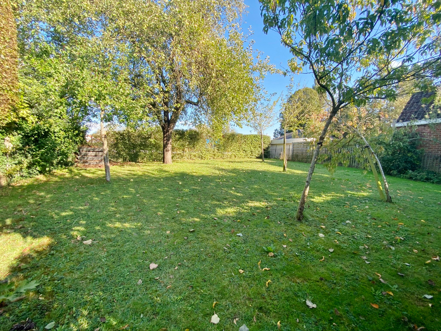 Zeer mooi aangelegde tuin. Voorste deel grasperk en tweede deel boomgaard.