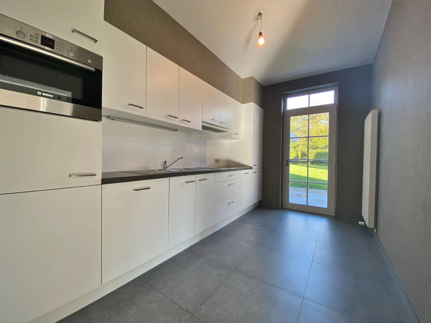 Volledig ingerichte keuken met toegang naar terras.