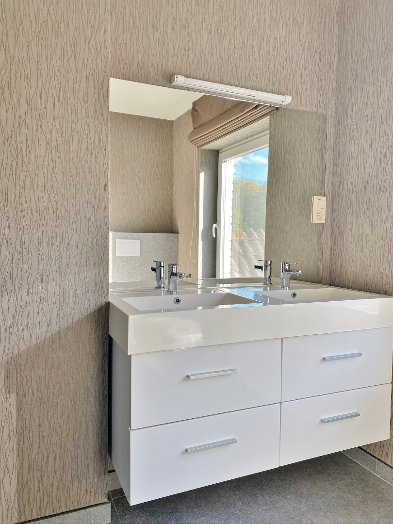 Bovenverdieping : 4 slaapkamers en ingerichte badkamer met douche, lavabo en toilet.