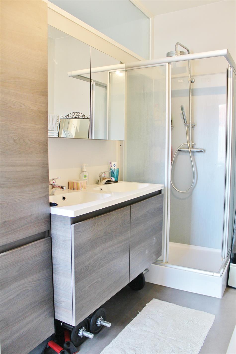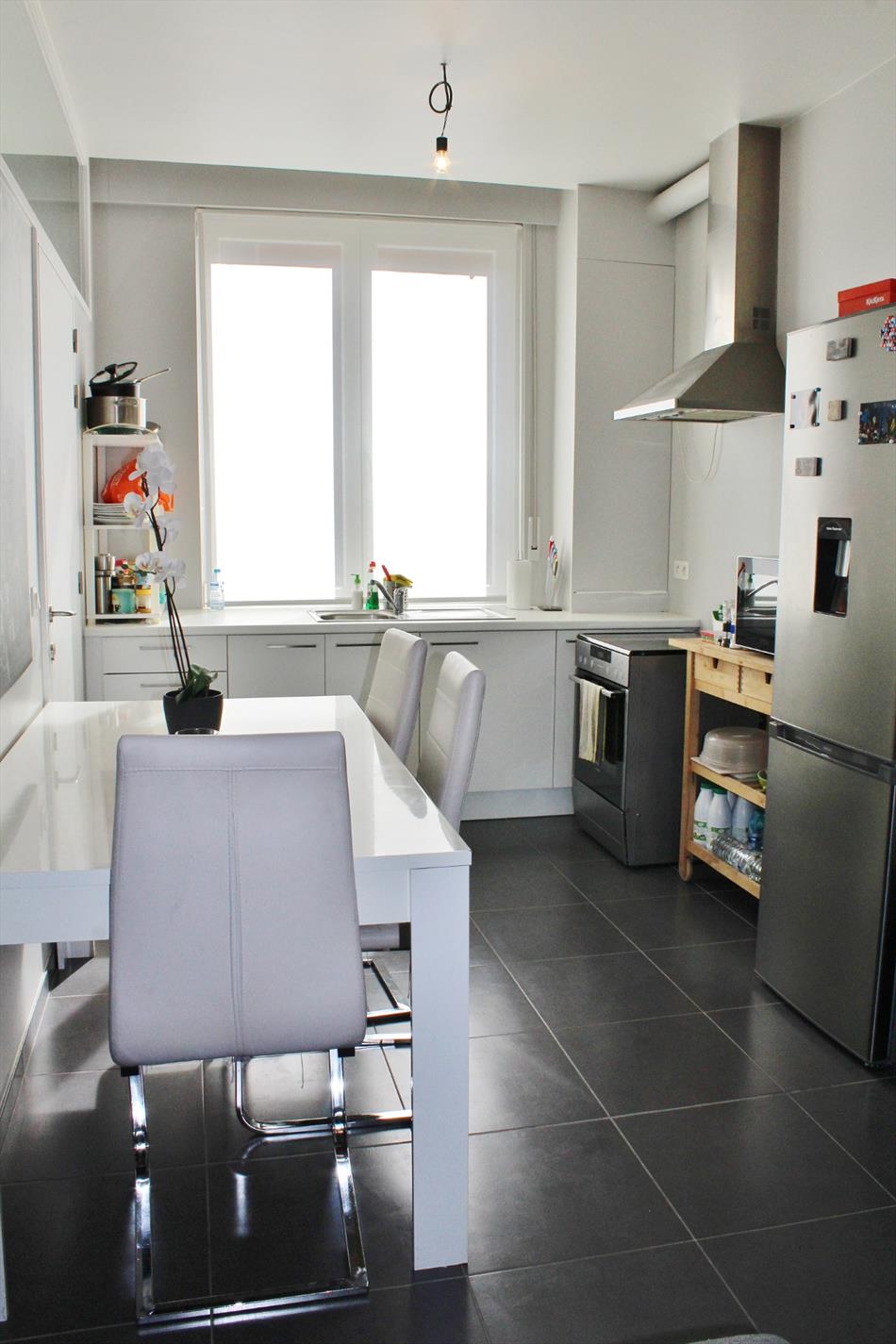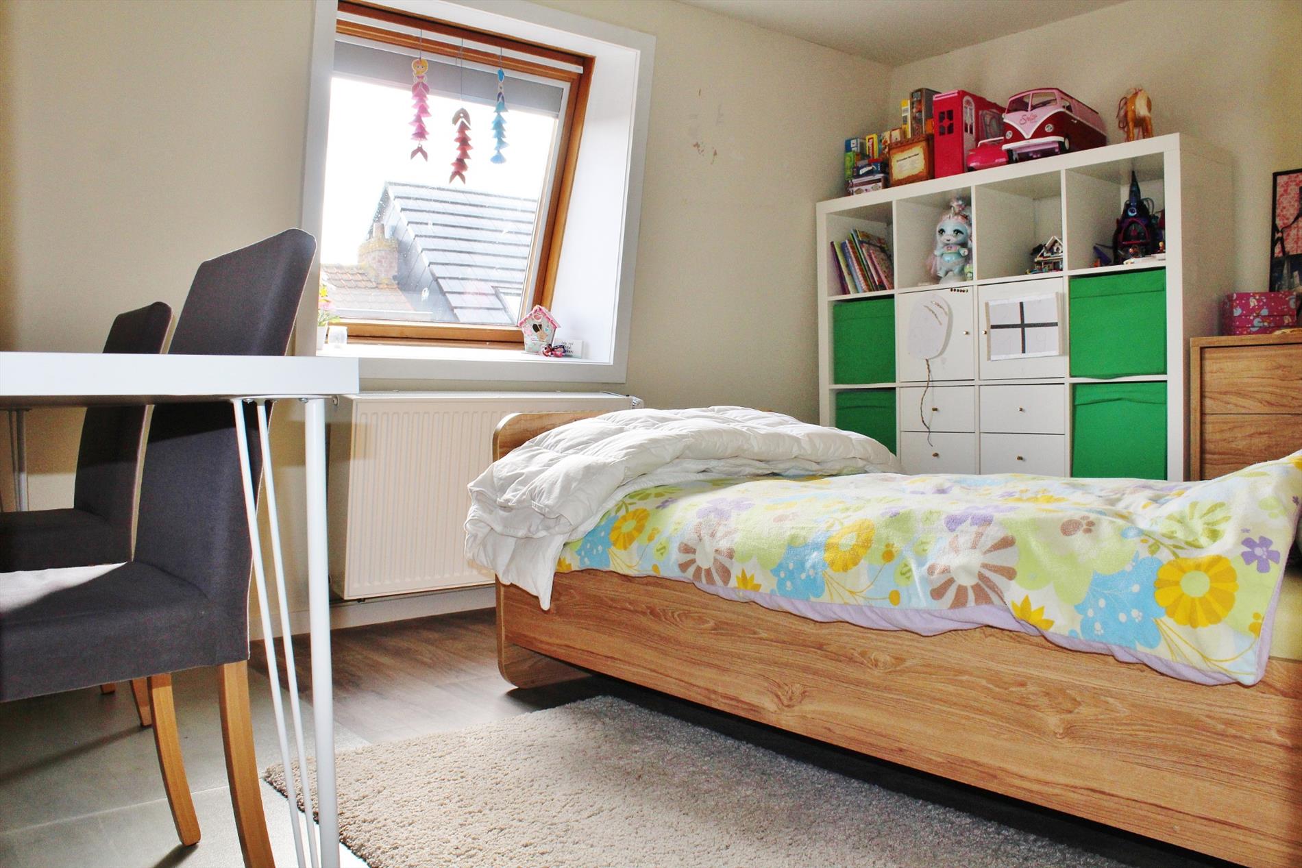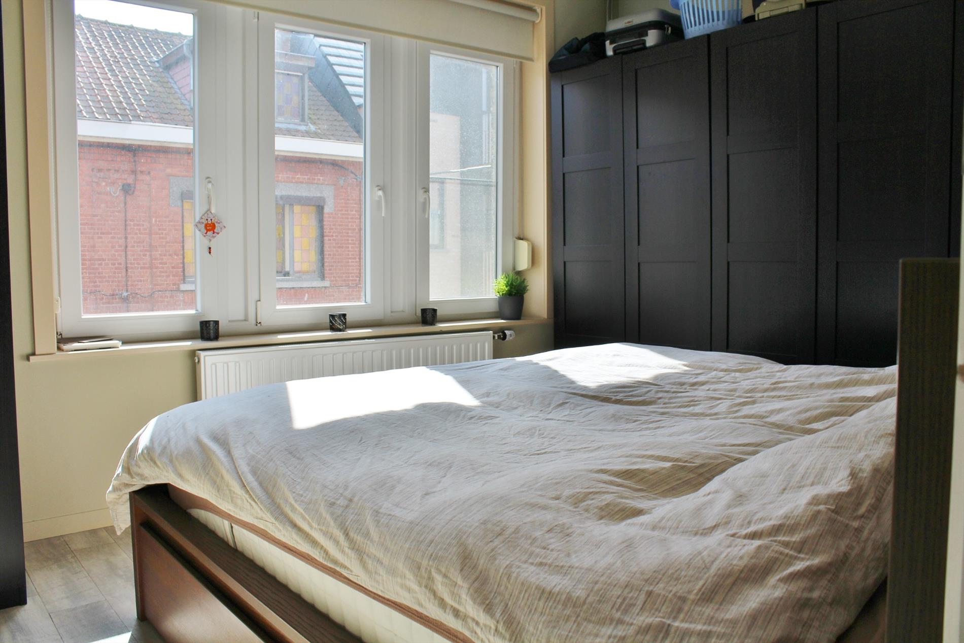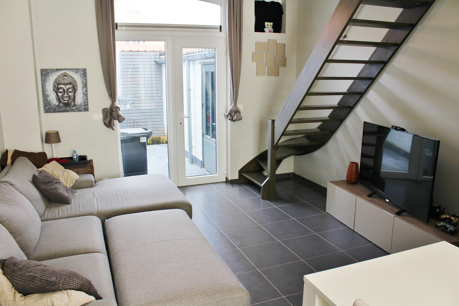 Deze instapklare woning is zeer centraal gelegen en omvat een gelijkvloerse verdieping met inkom, ruime lichtrijke leefruimte met open ingerichte keuken en een gezellige koer met ruime buitenberging. Op het eerste verdiep zijn een ruime slaapkamer en volledig ingerichte badkamer ( douche, lavabomeubel, toilet en aansluiting voor wasmachine en droogkast ). Op het tweede verdiep zijn 2 ruime slaapkamers.