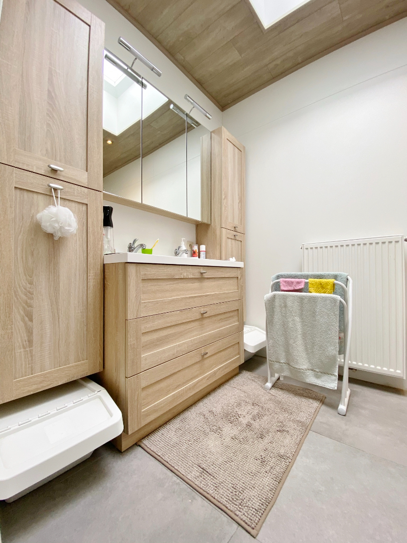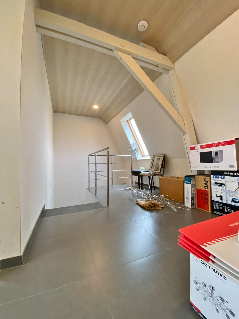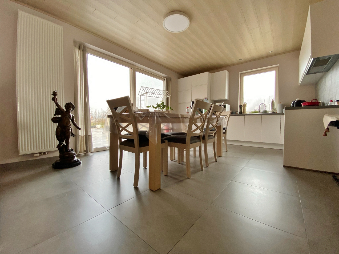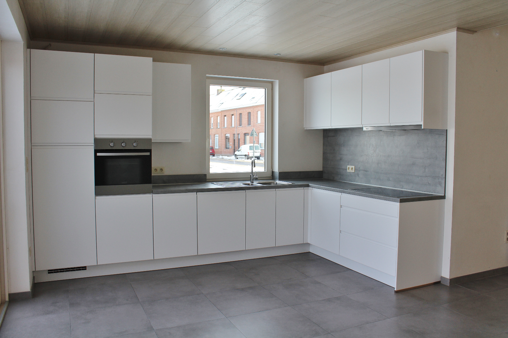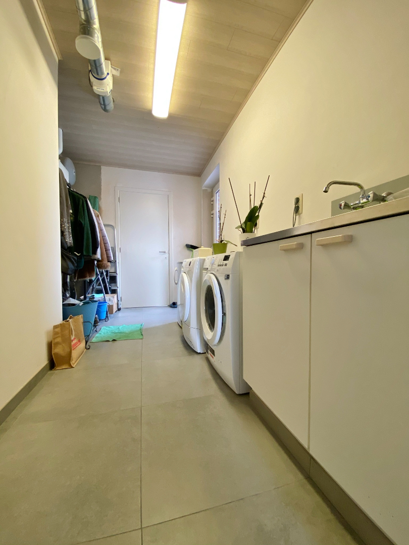 Deze woning is centraal gelegen en omvat een gelijkvloerse verdieping met inkom, ruime lichtrijke leefruimte met open volledig ingerichte keuken, bergruimte, bureauruimte, slaapkamer, badkamer met lavabomeubel en inloopdouche, wasplaats en ruime garage met automatische poort. Op het eerste verdiep zijn 3 slaapkamers. Buiten is een oprit, parkeerplaats en ruime afgesloten tuin met terras.
