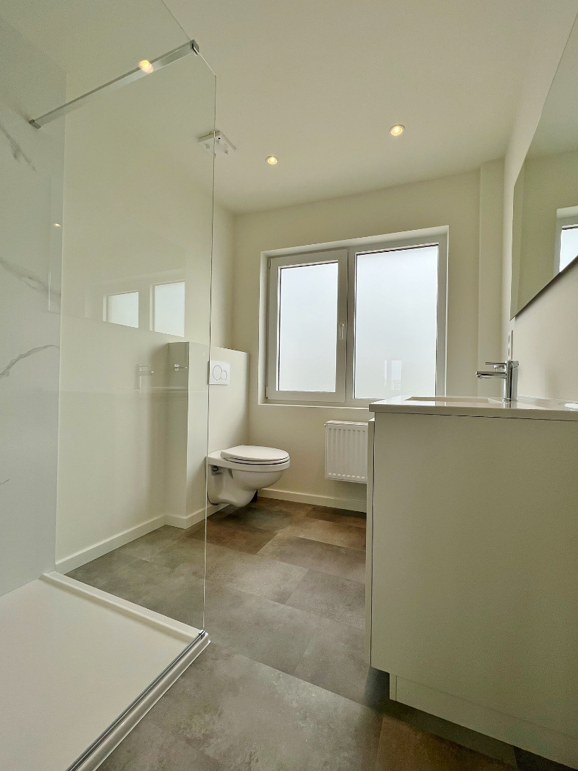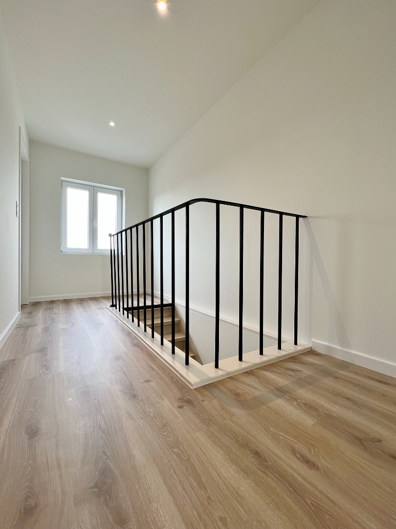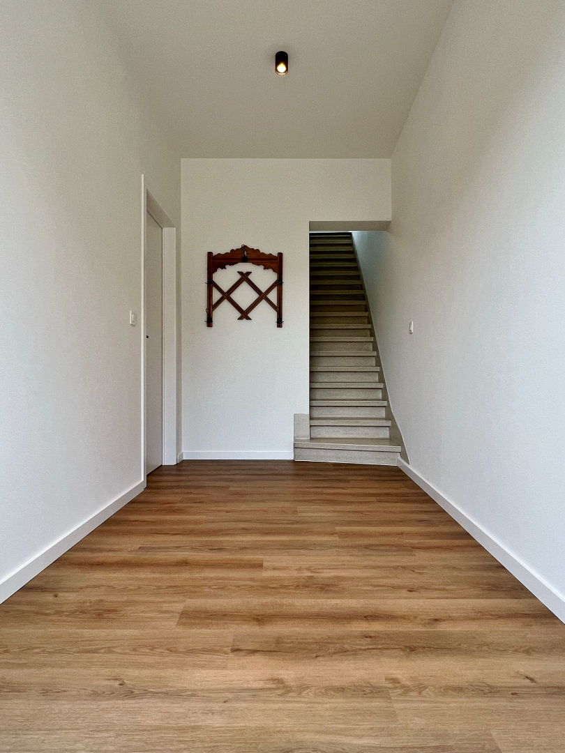 Deze rijwoning werd volledig gerenoveerd en bevindt zich nabij het centrum van Ieper. De gelijkvloers omvat een inkomhal, ruime lichtrijke leef- en eetruimte met open en volledig geïnstalleerde keuken waar je zicht hebt over de tuin, een wasplaats/berging en een apart toilet. De eerste verdieping omvat twee ruime slaapkamers en een badkamer met lavabomeubel, inloopdouche en toilet.