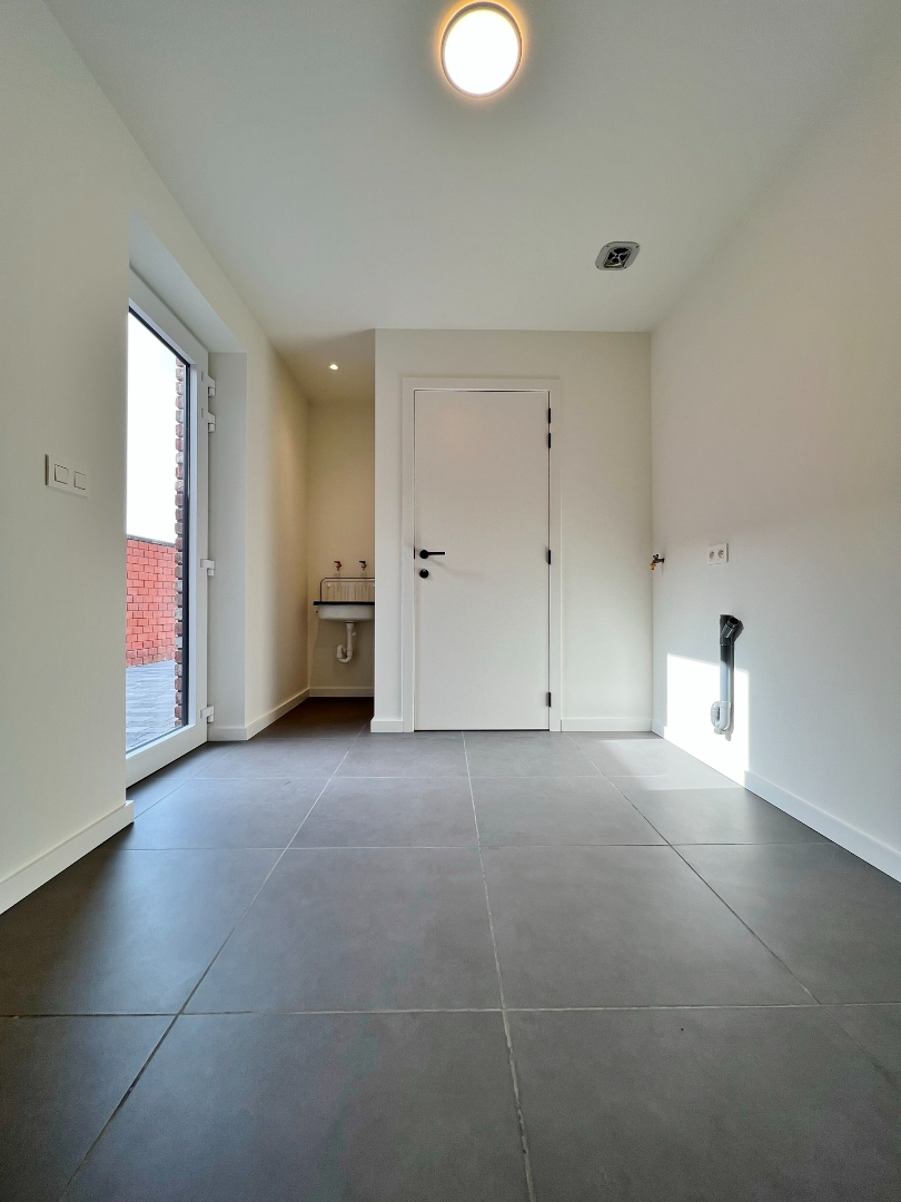 Er is een uitweg via de garage --> gemakkelijk met fietsen, vuilbakken en tuingerief,...