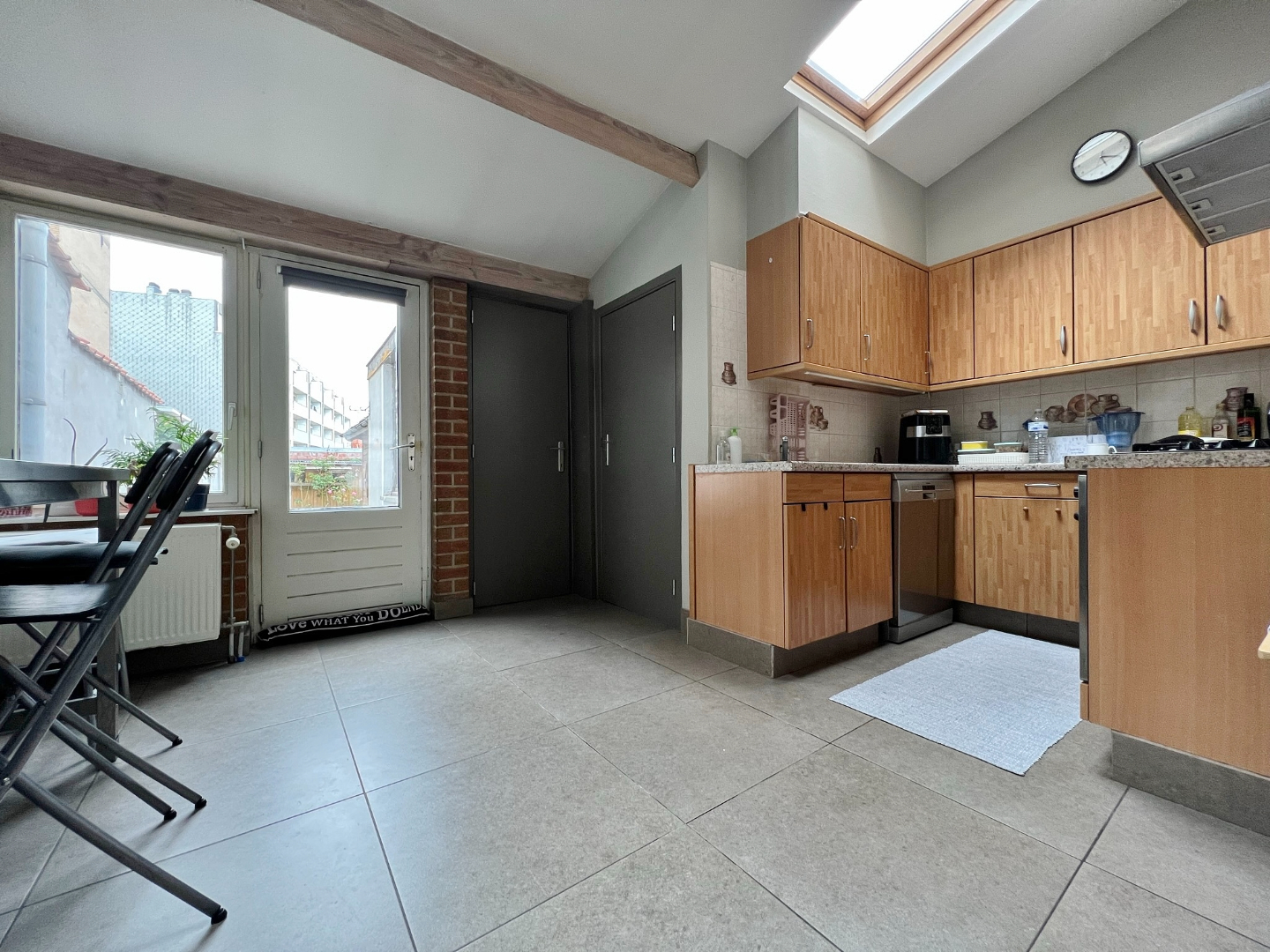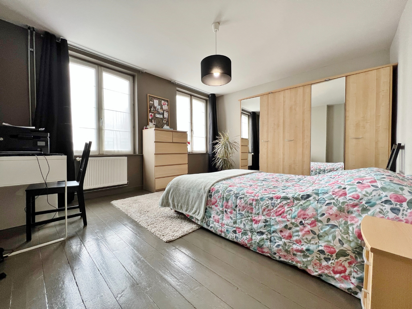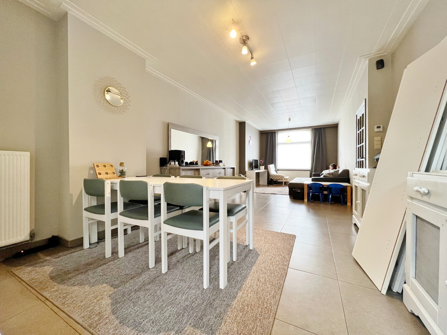 Deze woning is zeer centraal gelegen en omvat een gelijkvloerse verdieping met inkom, bergplaats, ruime lichtrijke leefruimte met volledig ingerichte open keuken, bergplaats, badkamer met douche, lavabo, aansluiting voor wasmachine en droogkast en apart toilet. Op het eerste verdiep zijn 2 ruime slaapkamers. Op het tweede verdiep zijn tevens 2 ruime slaapkamers en een bergplaats.