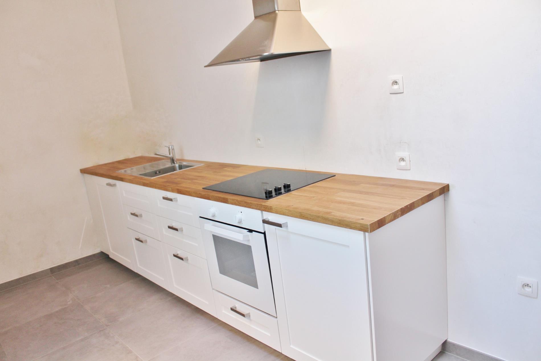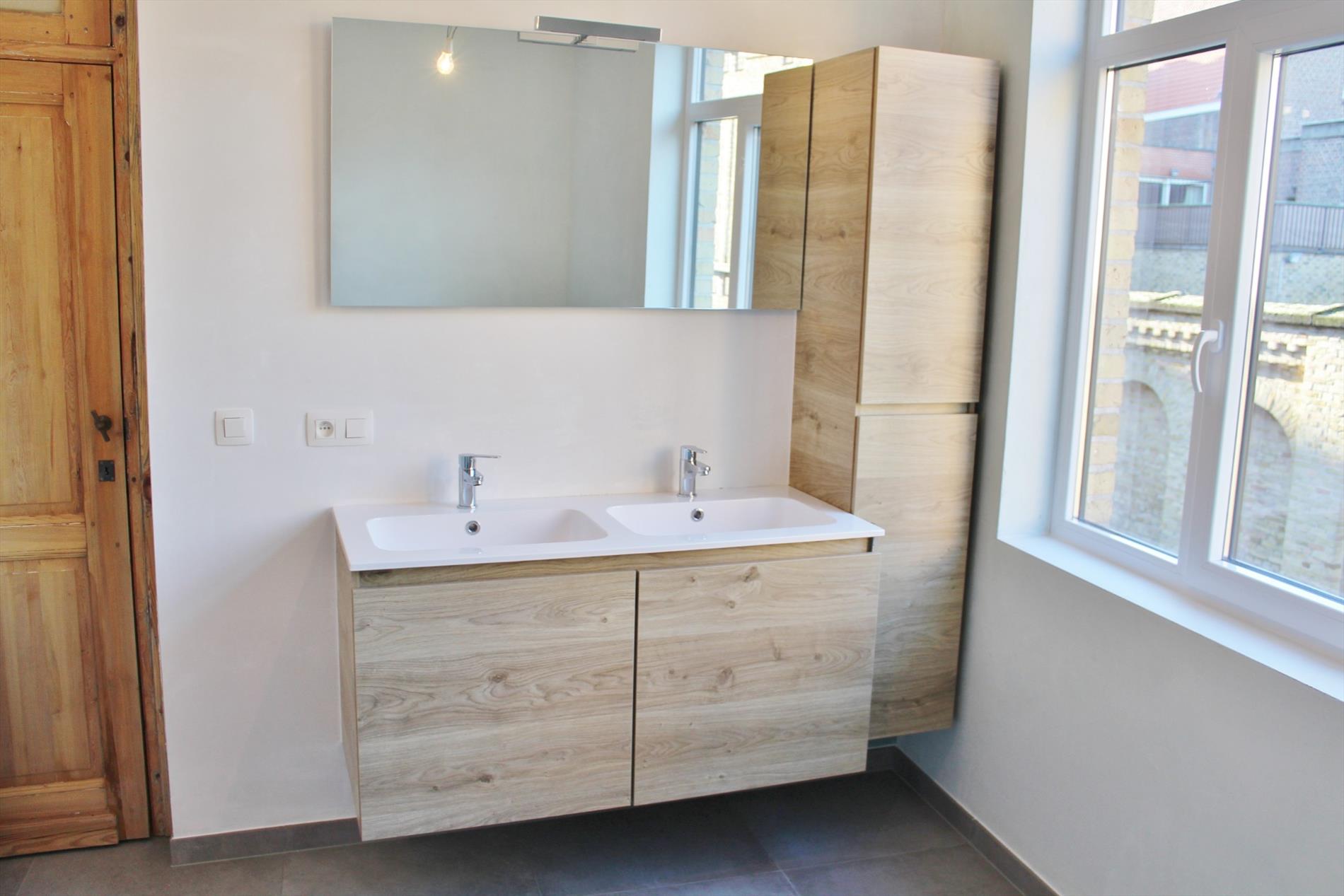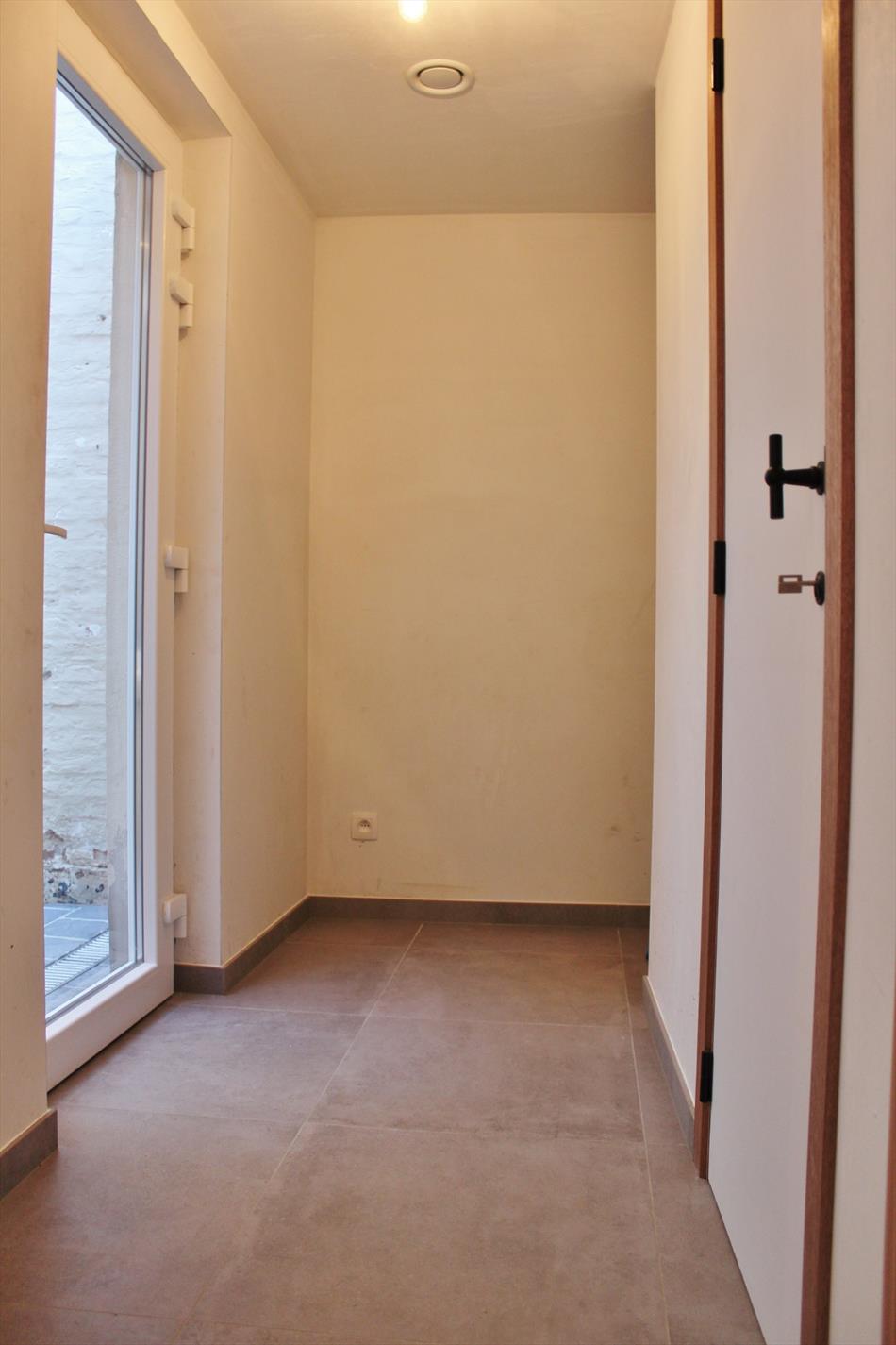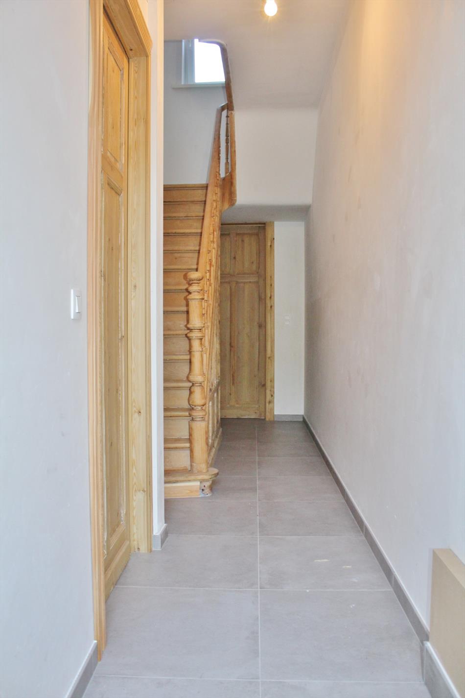 Deze eigendom is volledig gerenoveerd met behoud van karakter en omvat een inkom, leefruimte met eet- en zitplaats, keuken, wasplaats met aansluiting voor wasmachine, apart toilet en een gezellige koer. Op het eerste verdiep is 1 ruime slaapkamer, een apart toilet en een badkamer met inloopdouche en dubbel lavabomeubel. Op het tweede verdiep zijn 2 slaapkamers.
