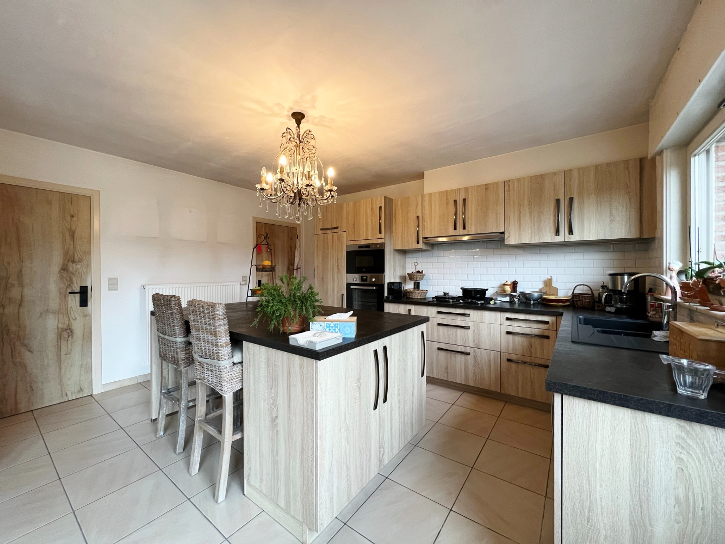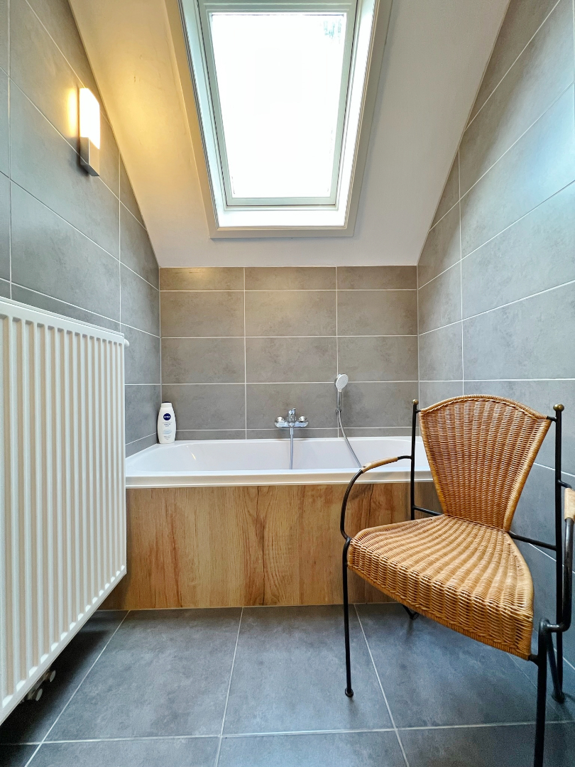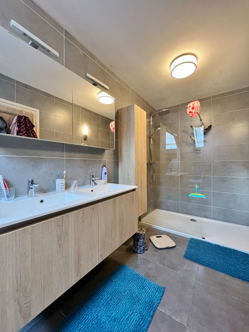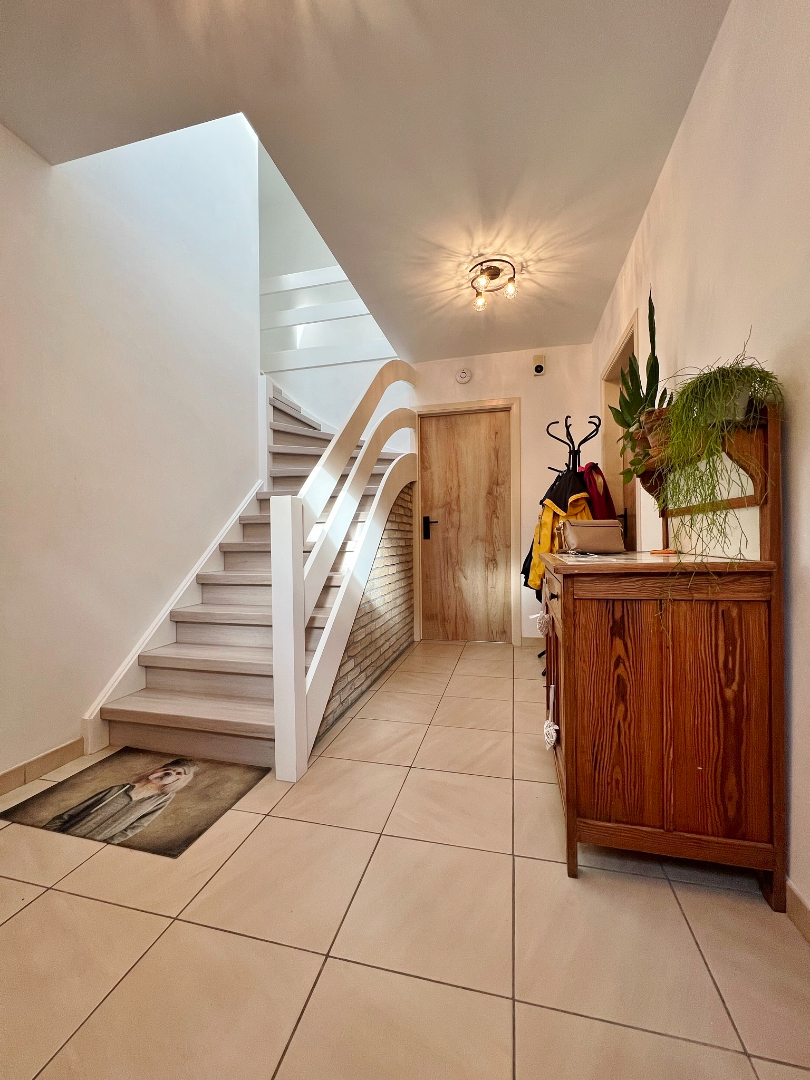 Deze woning omvat een gelijkvloerse verdieping met inkom, gastentoilet, ruime lichtrijke leefruimte met eet- en zitplaats en open volledig ingerichte keuken, een bergruimte met kelderberging en een badkamer met ligbad, inloopdouche en dubbel lavabomeubel. Op het eerste verdiep zijn 4 ruime slaapkamers en een bergruimte. buiten is een volledig afgesloten zonnige tuin met terras. Er zijn tevens een ruime garage met aansluiting voor wasmachine en een zolder.