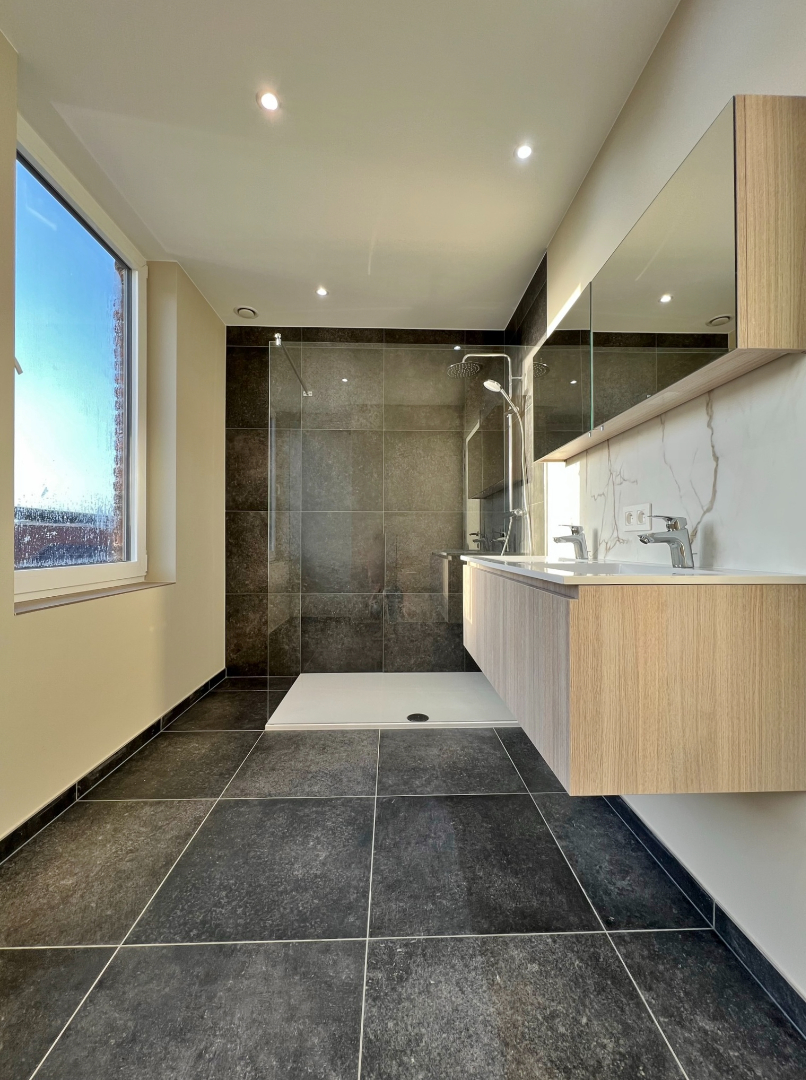 Deze volledig vernieuwde rijwoning is centraal gelegen in Ieper en omvat een gelijkvloerse verdieping met inkom, gastentoilet, ruimte lichtrijke leefruimte met ingerichte keuken, bergruimte, voorplaats ( bureau/bergruimte/plaatsen fietsen). Op het eerste verdiep zijn een slaapkamer, een apart toilet en een badkamer met inloopdouche en lavabomeubel. Op het tweede verdiep zijn 2 slaapkamers waarvan 1 met ingemaakte kasten en mezzanine. Buiten is een zuidgerichte onderhoudsvriendelijke tuin met buitenberging.