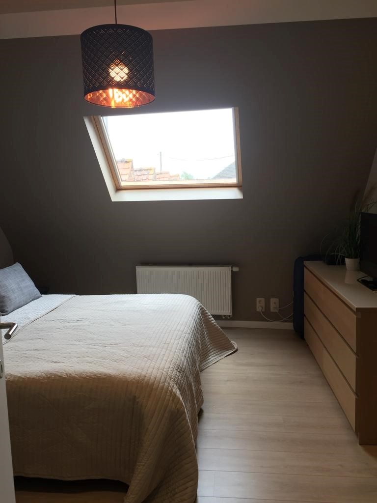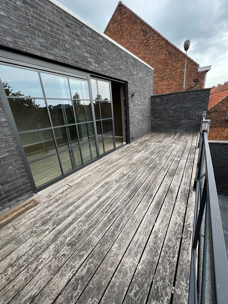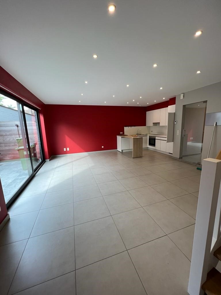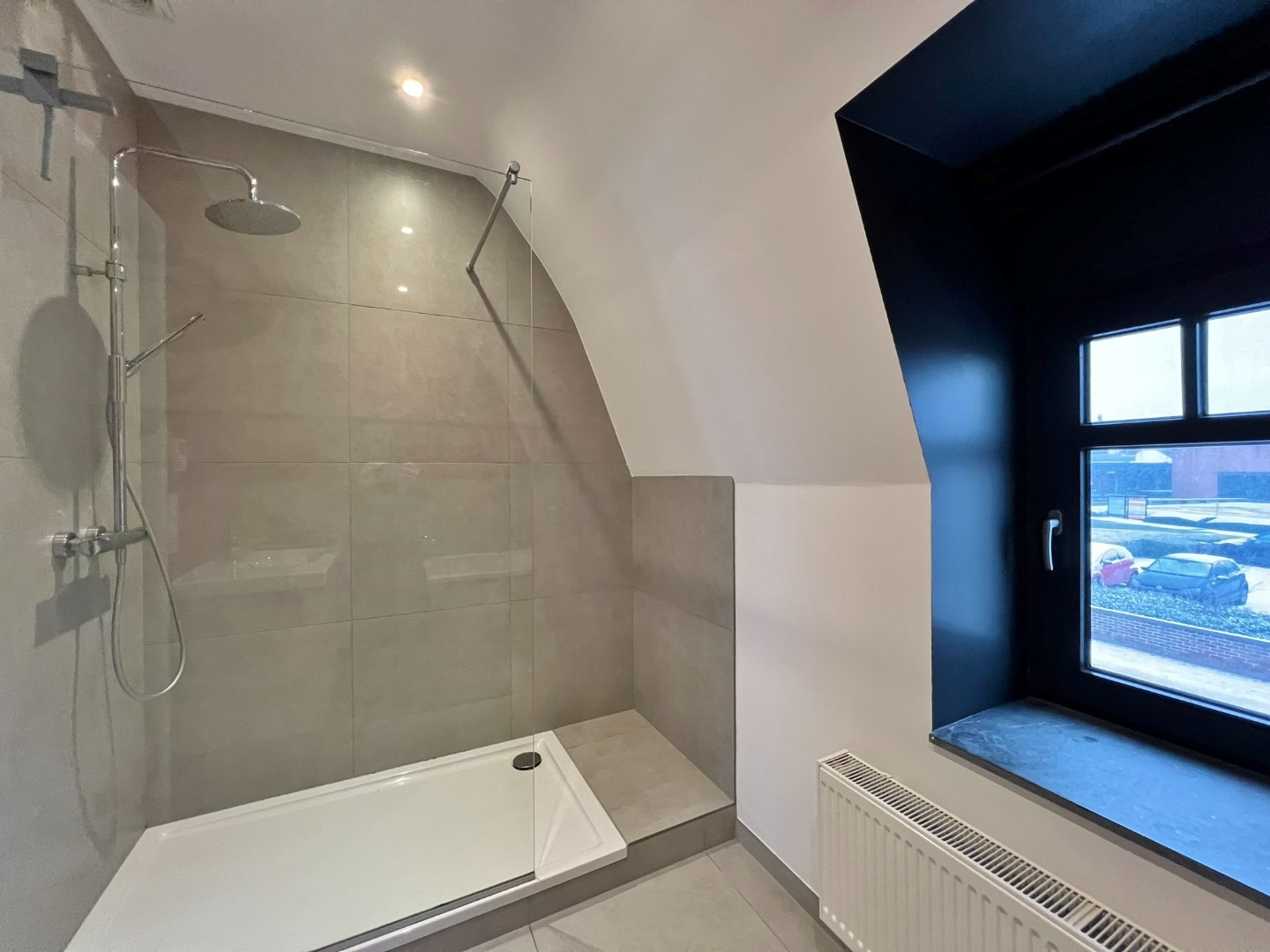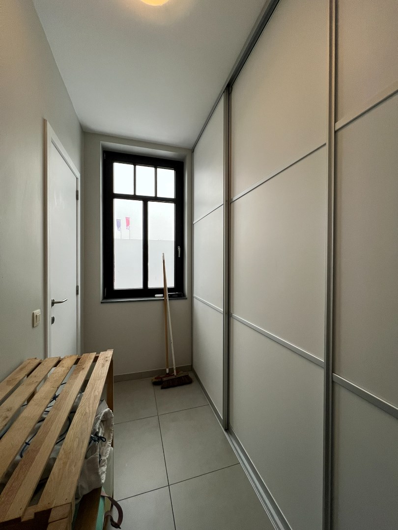 Deze woning omvat een gelijkvloerse verdieping met Inkom voorzien van ingemaakte kast, apart toilet, badkamer met inloopdouche en lavabomeubel, bureau/dressing/bergruimte, lichtrijke leefruimte met volledig ingerichte open keuken en aansluitende bergruimte. Via een groot openschuivend raam is er toegang tot de koer.