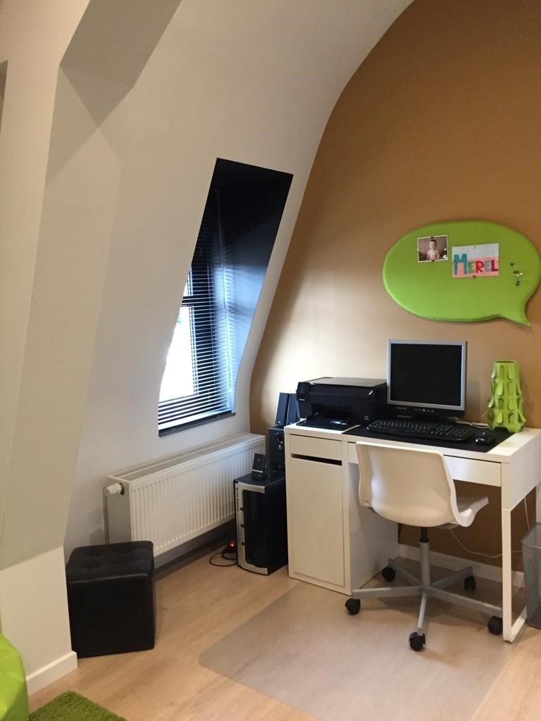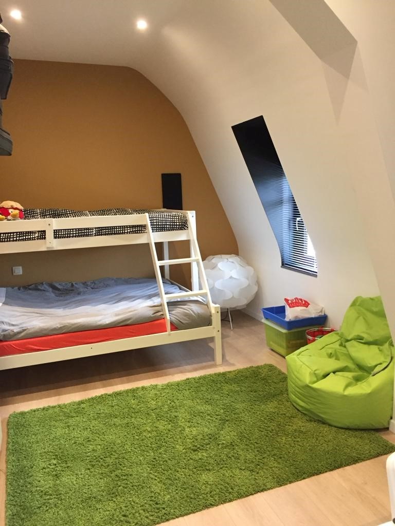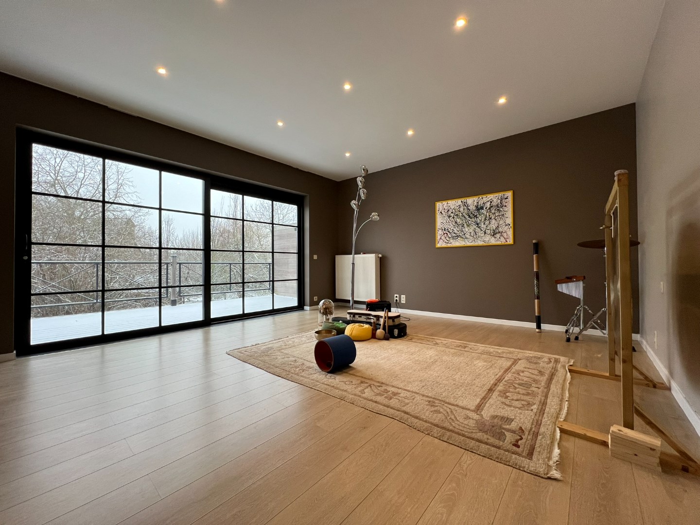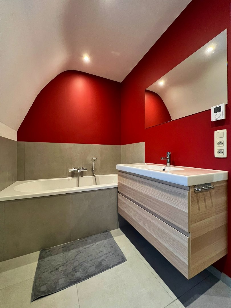 De eerste verdieping omvat een hall, 2de leefruimte/grote slaapkamer met aansluitend ruim zonneterras, 2 extra slaapkamers, apart toilet, badkamer met ligbad, douche en lavabo.
